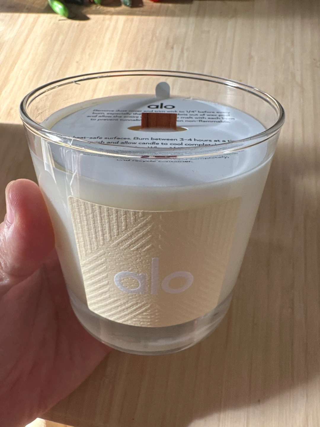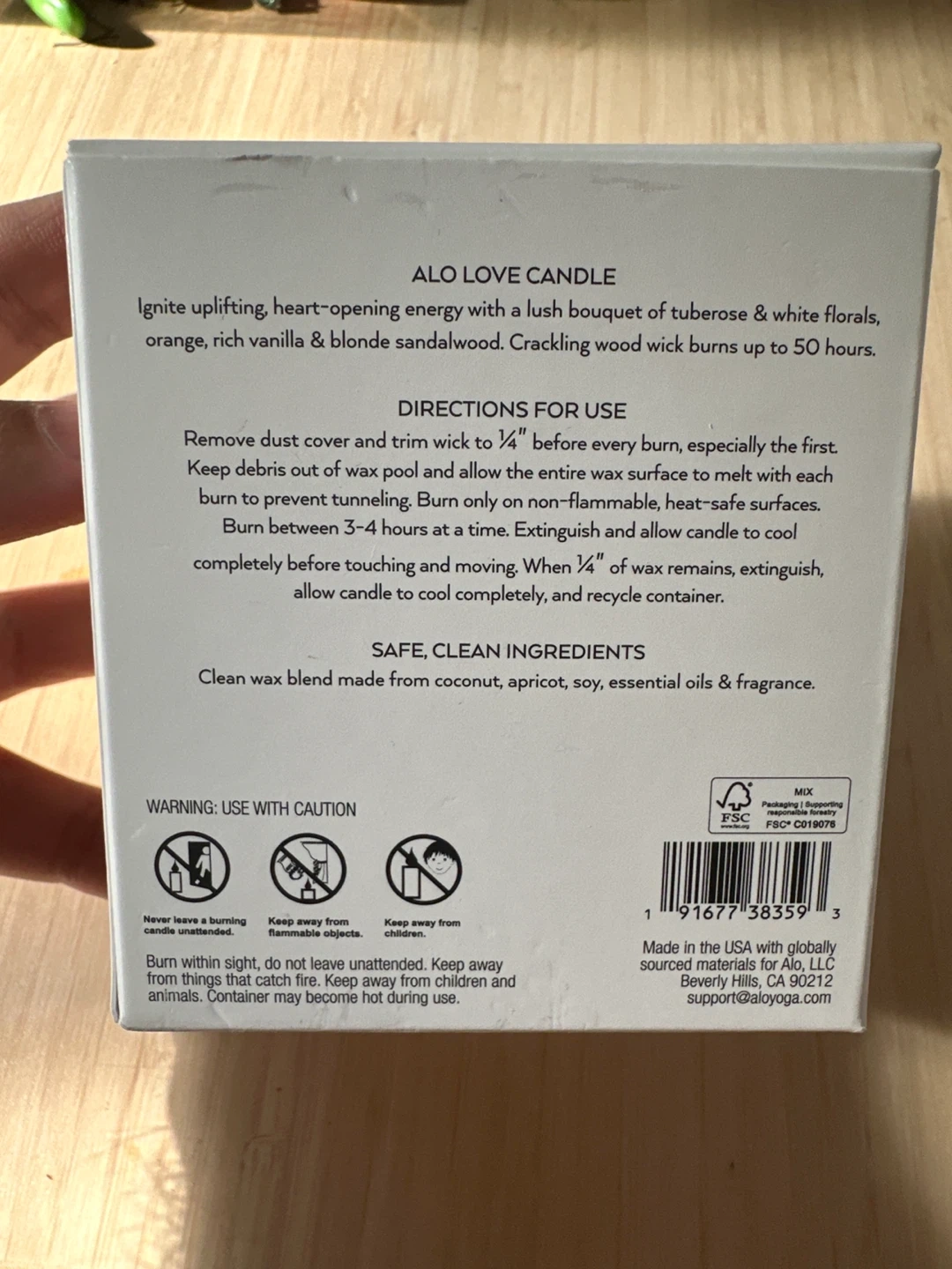 This Alo Love Candle features a blend of tuberose & white florals, orange, rich vanilla & blonde sandalwood. It has a crackling wood wick that burns up to 50 hours. The wax blend is made from coconut, soy, essential oils & fragrance.
