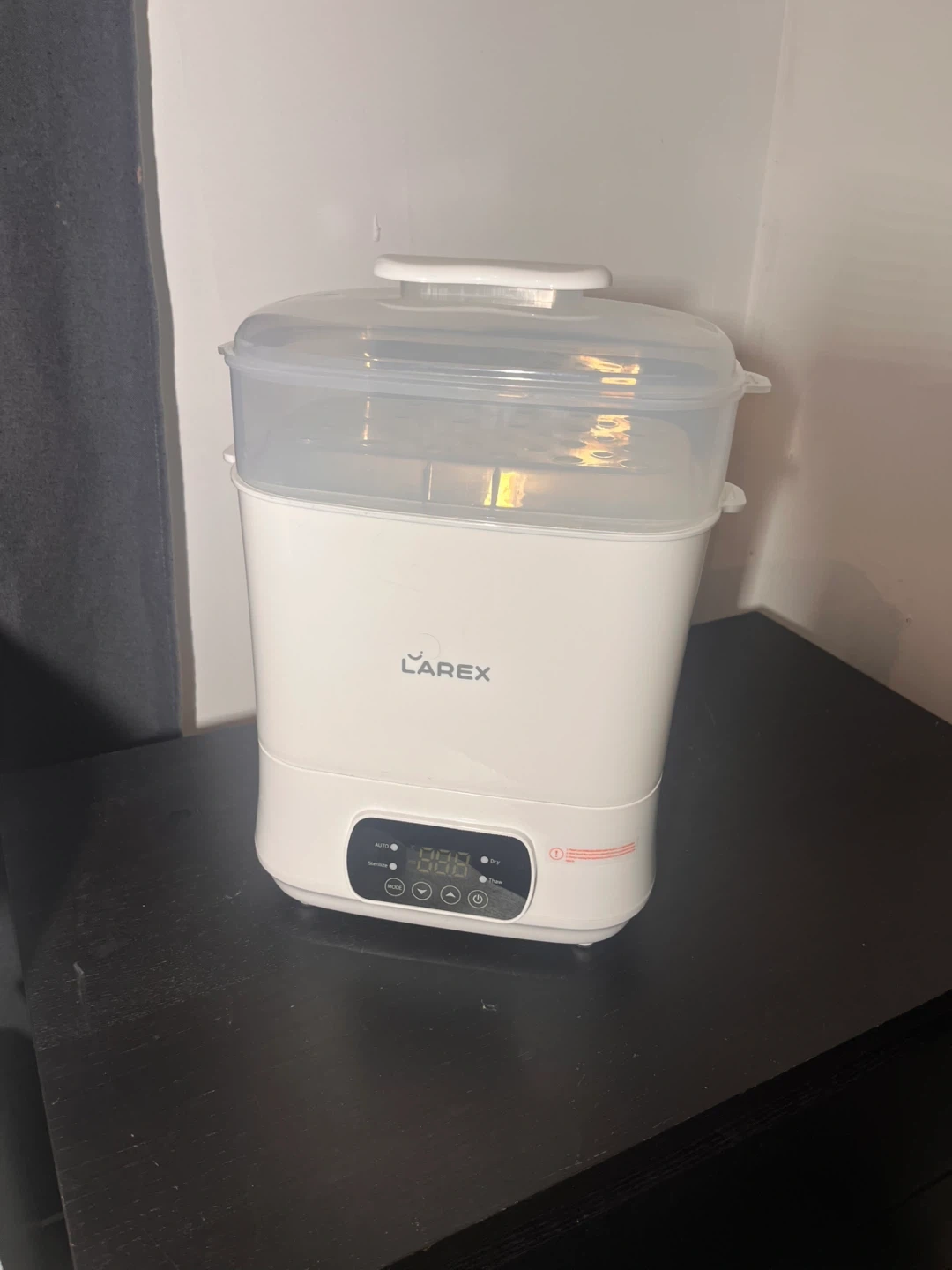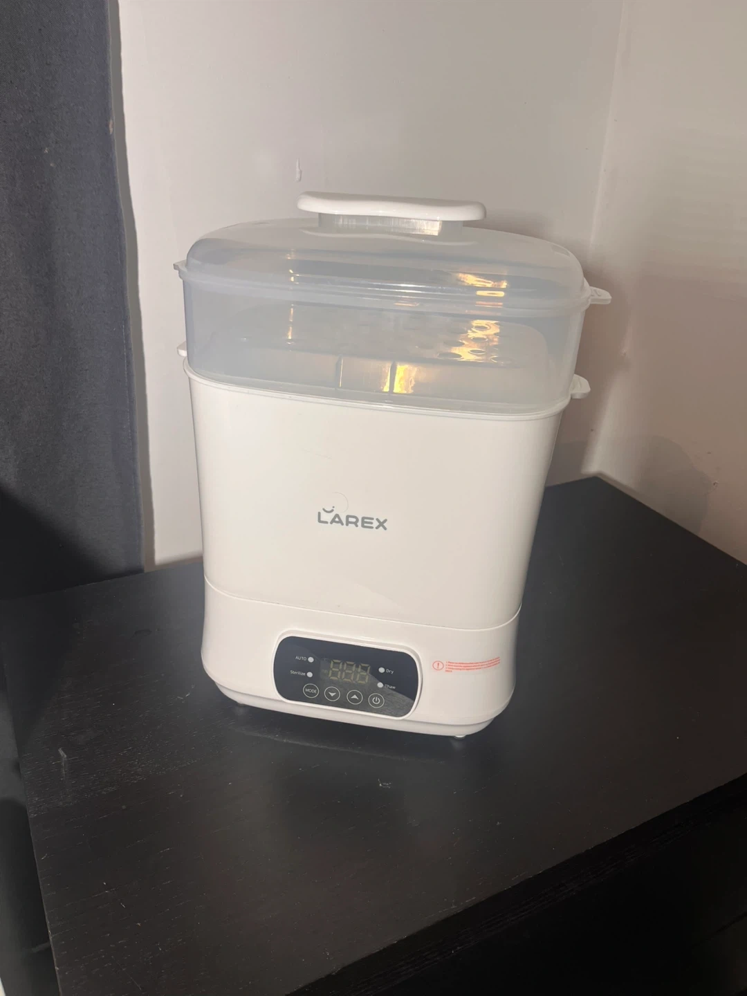 This LAREX bottle sterilizer and dryer effectively sanitizes and dries baby bottles. It has an automatic shut-off function for safety. Keeps bottles ready for your little one!