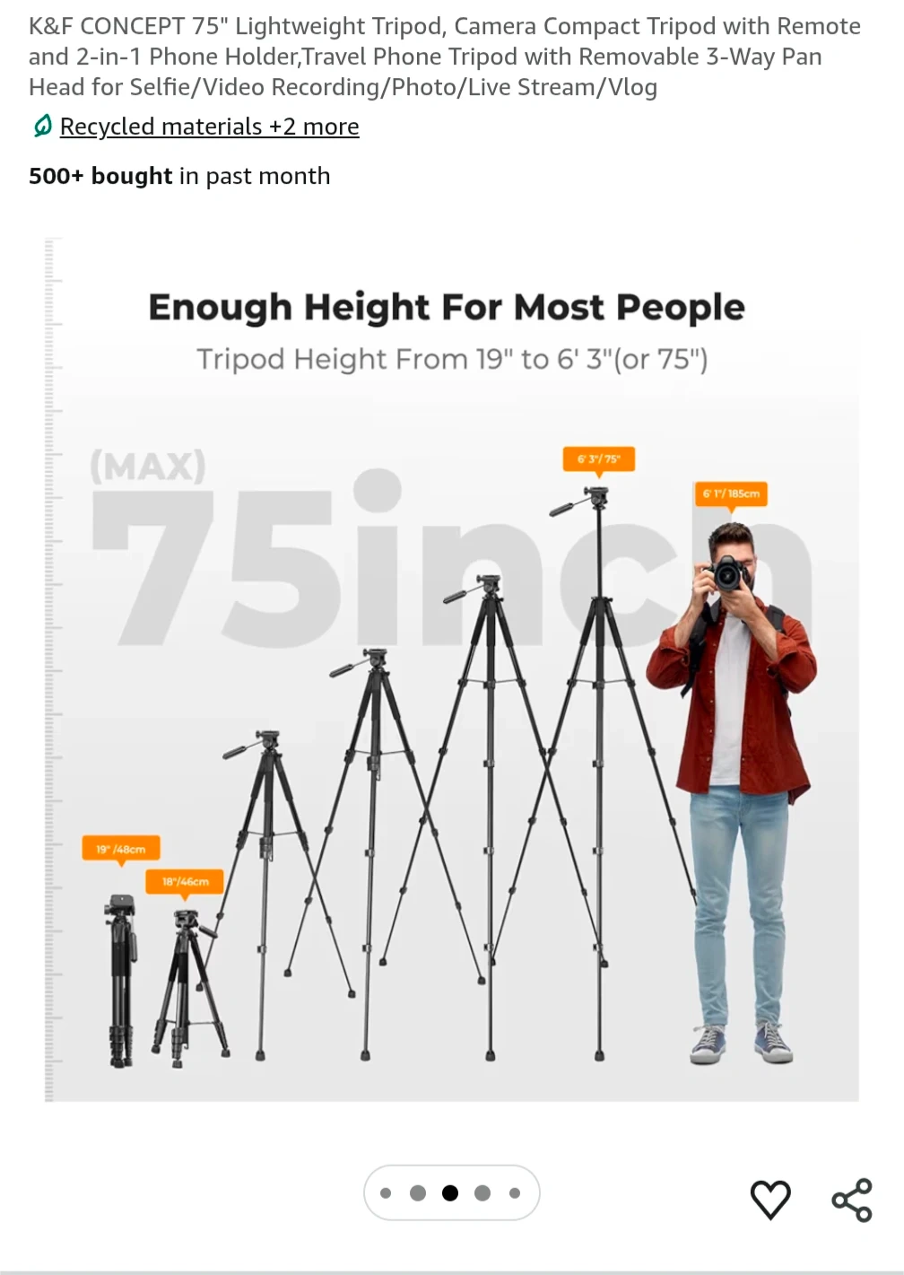 K&F CONCEPT 75" Lightweight Tripod with Remote