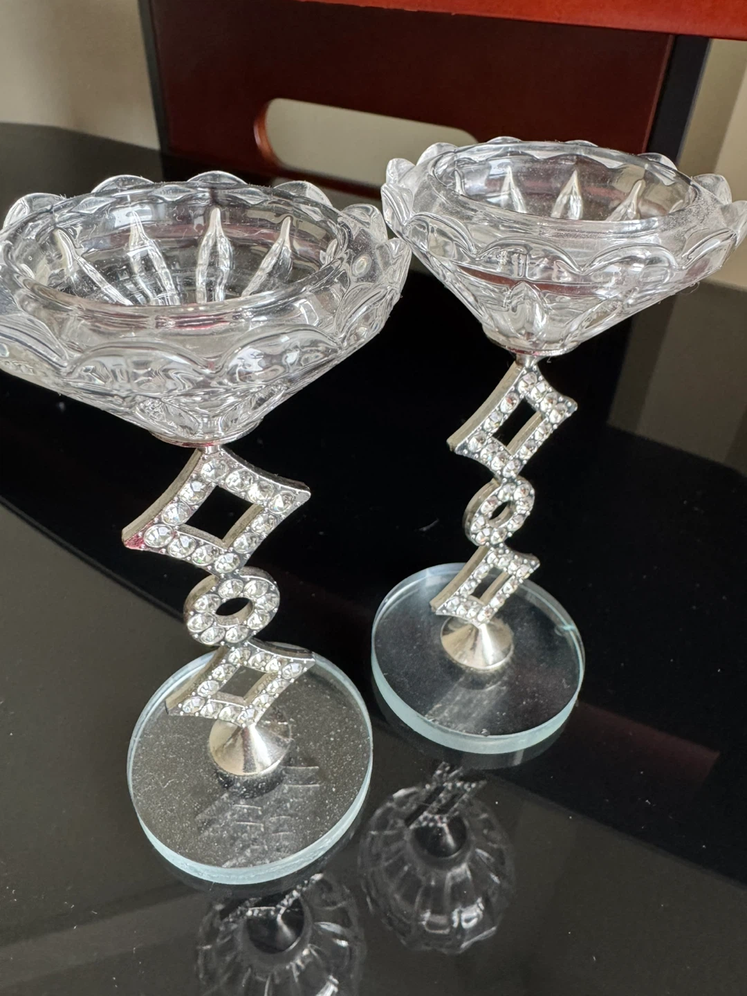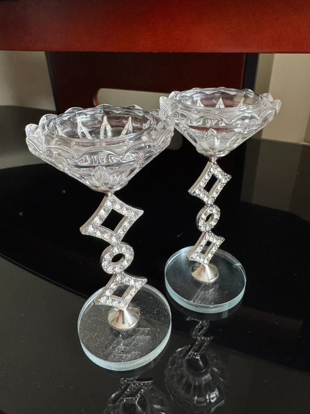 Set of 2 Decorative Crystal Candle Holders with Rhinestones