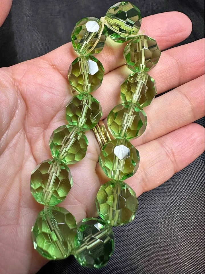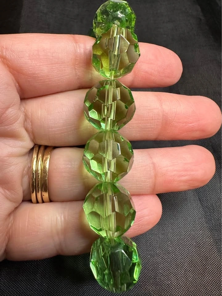 Sparkly green bracelet with faceted beads that catch the light. Stretchy design, easy to wear. Appears to be glass or crystal, definitely not plastic! It has a nice weight to it. Pickup only in Coquitlam Westwood Plateau, behind IGA.