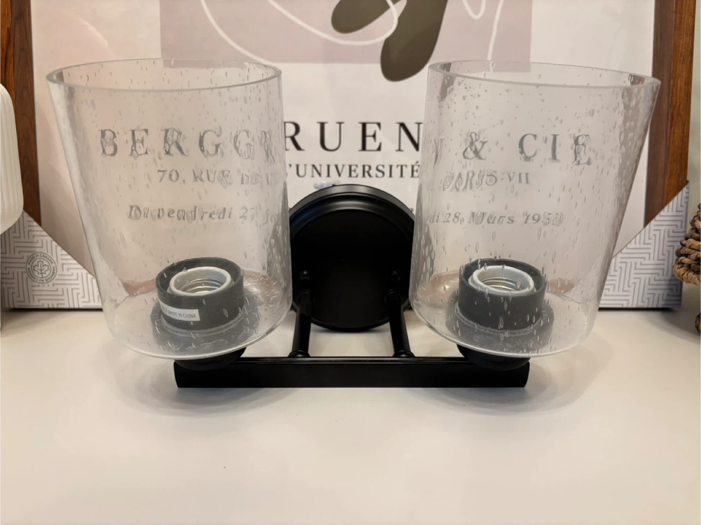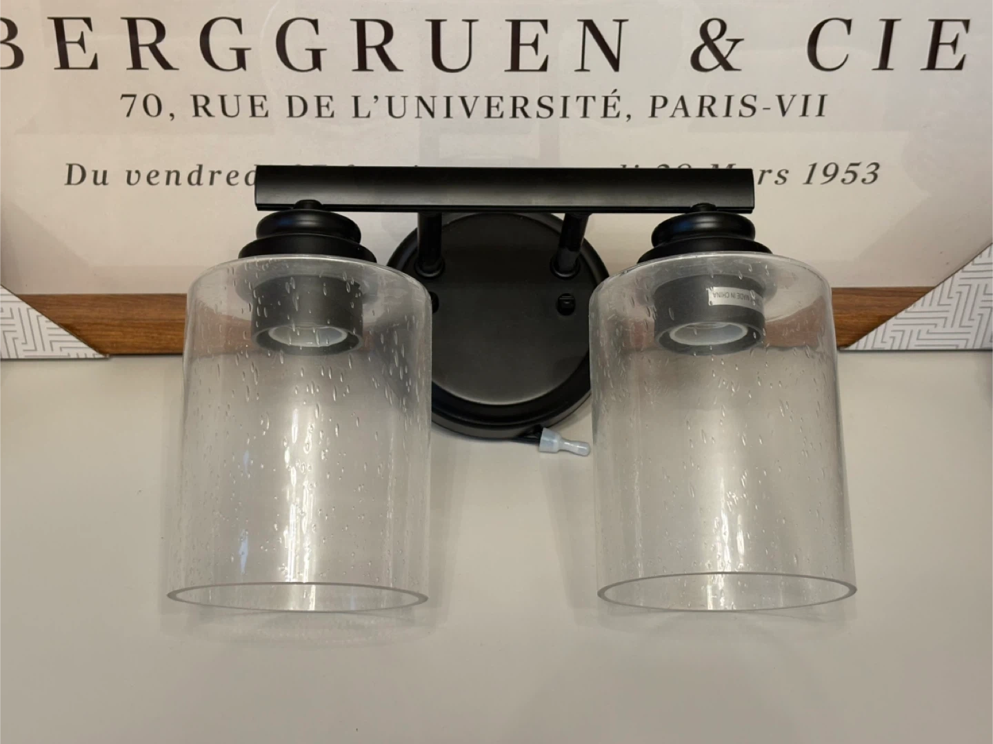Selling a stylish 2-light vanity light fixture! It features a sleek black finish and clear glass shades. Can hang it either direction. Perfect for adding a touch of modern elegance to your bathroom or powder room.