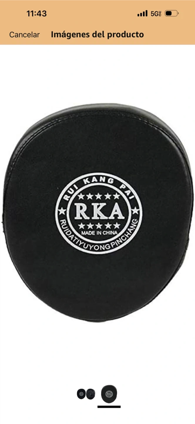Black RKA punch mitts for training. These mitts feature a padded striking surface and an adjustable strap for a secure fit. Great for boxing or martial arts practice!