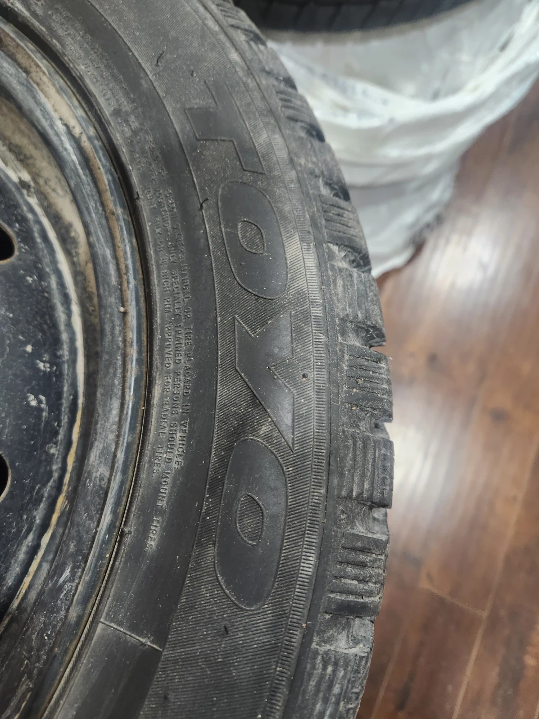 Selling a set of Toyo winter tires. The size is 205/55R16 91T. They're ready to keep you safe on the road this winter! On steel rims 5/100 bolt pattern came off vw golf jetta