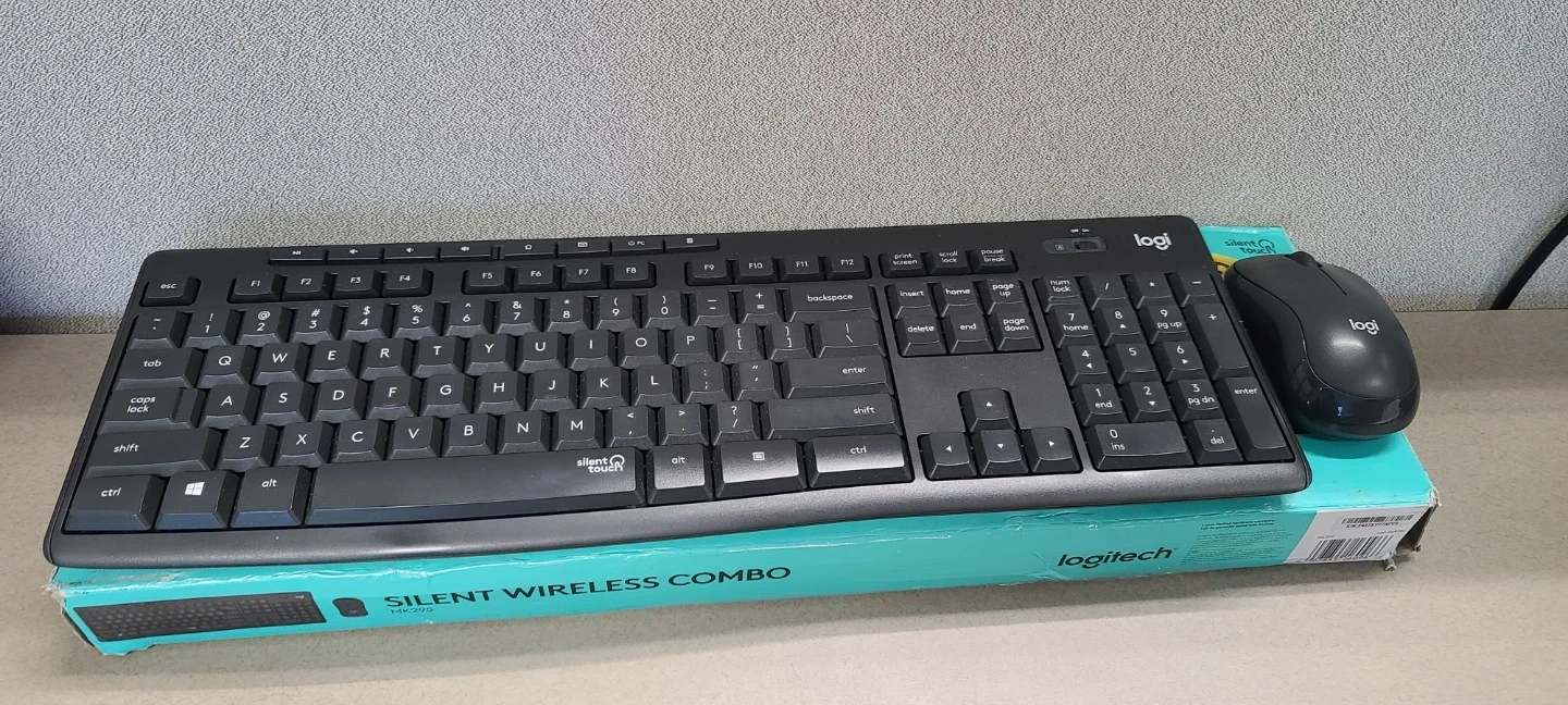 This is a Logitech MK295 Silent Wireless Combo. It includes a keyboard and a mouse. The keyboard has silent touch keys for reduced noise.