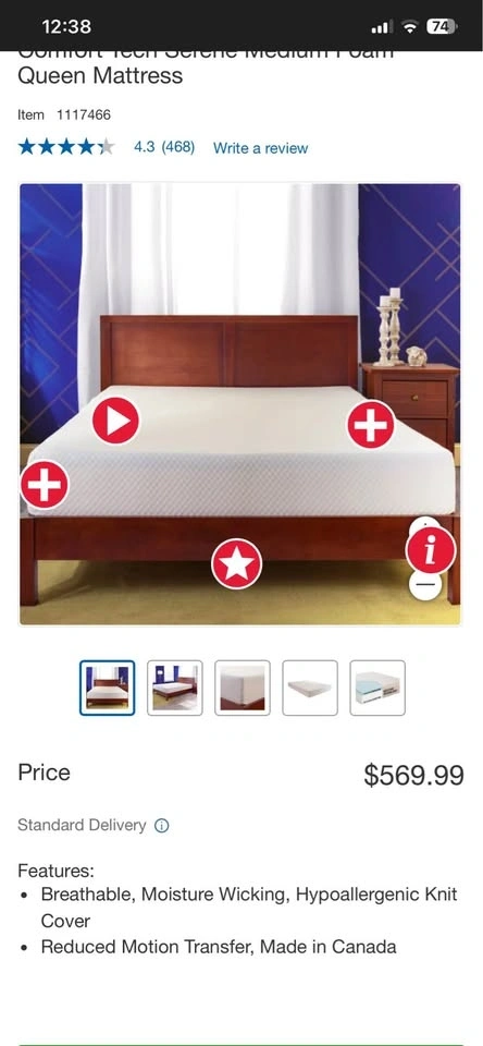Comfort Tech™ 10" Serene™ Foam Queen Mattress. This mattress features a top layer of Serene™ foam with Supportive Air Technology™ for reduced pressure and motion transfer. It sleeps cool and has a high resiliency foam base. The mattress has a breathable, moisture-wicking, hypoallergenic knit cover. It's CertiPUR-US® certified and made in Canada. Dimensions: Queen 79.5" x 59.5" x 10". Weight: 65 lb. Ready for immediate use. Feel free to message if you have any questions!