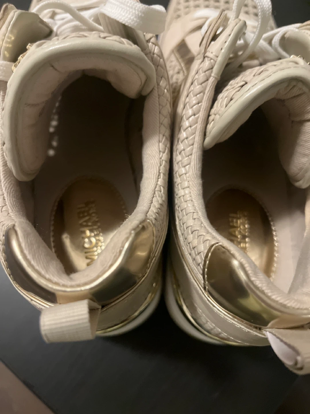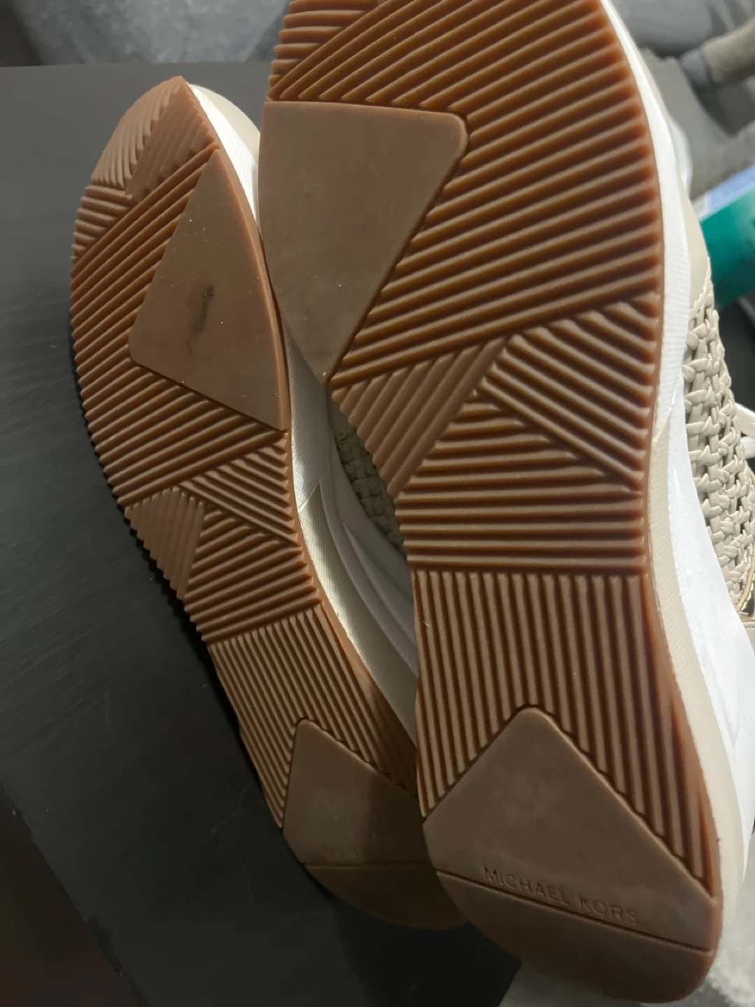 Selling a pair of Michael Kors sneakers in a lovely beige colour. They feature a stylish woven design and gold accents. Perfect for adding a touch of elegance to your casual outfits!