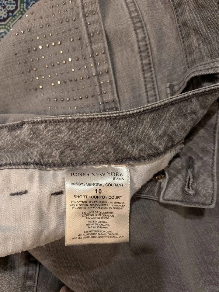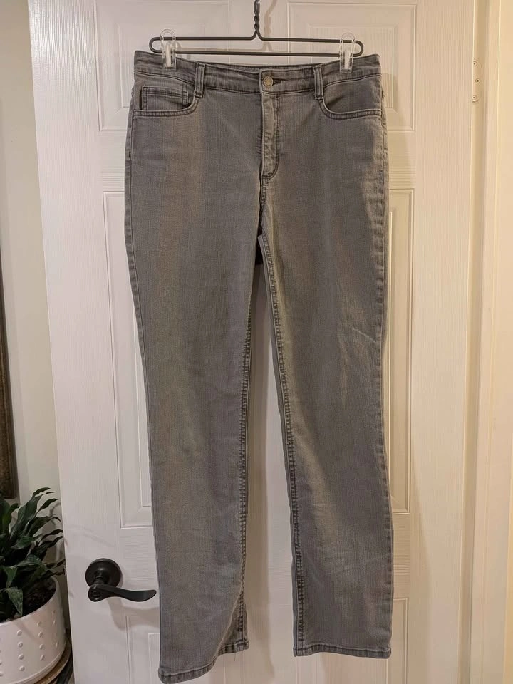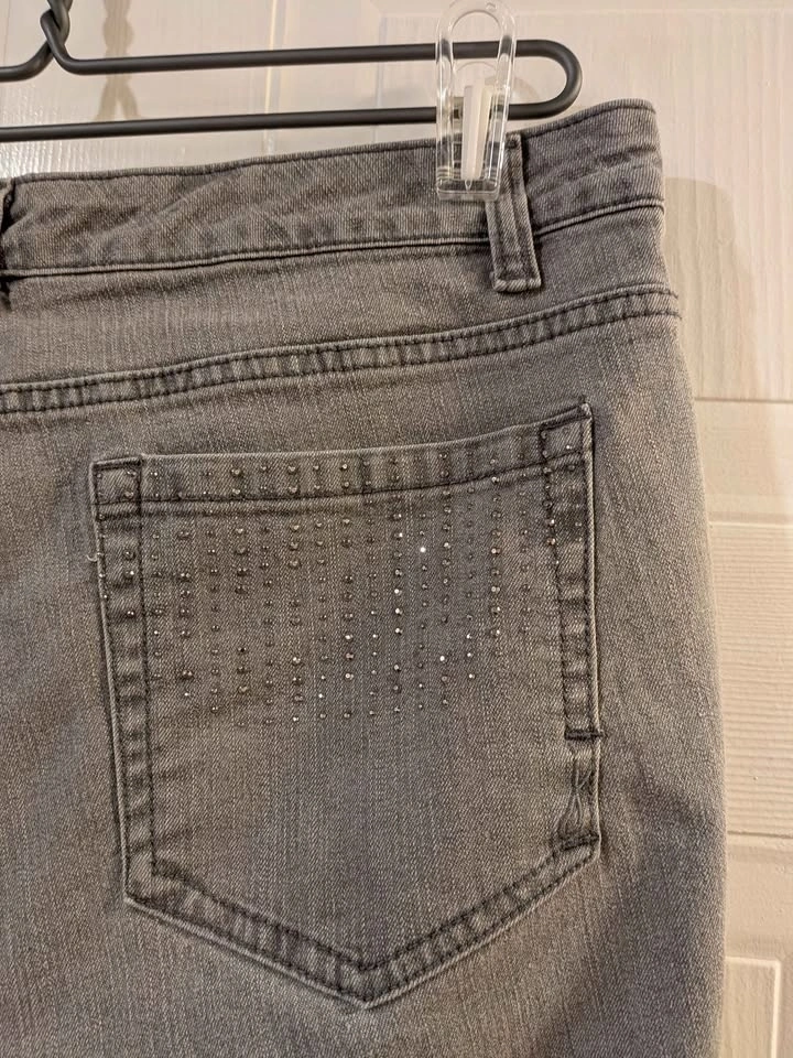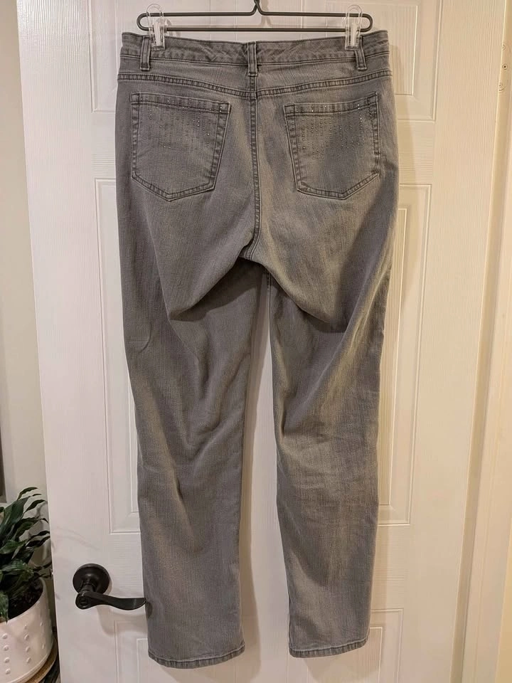 EEUC Jones New York jeans, Lexington Straight size 10, 30" inseam. Medium grey colour, sparkly back pockets, with "Secret Slimming Features". Please see other jean listings too. Brock and Rossland area Whitby. Cash or emt.