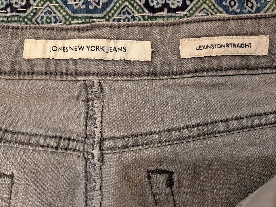 EEUC Jones New York jeans, Lexington Straight size 10, 30" inseam. Medium grey colour, sparkly back pockets, with "Secret Slimming Features". Please see other jean listings too. Brock and Rossland area Whitby. Cash or emt.