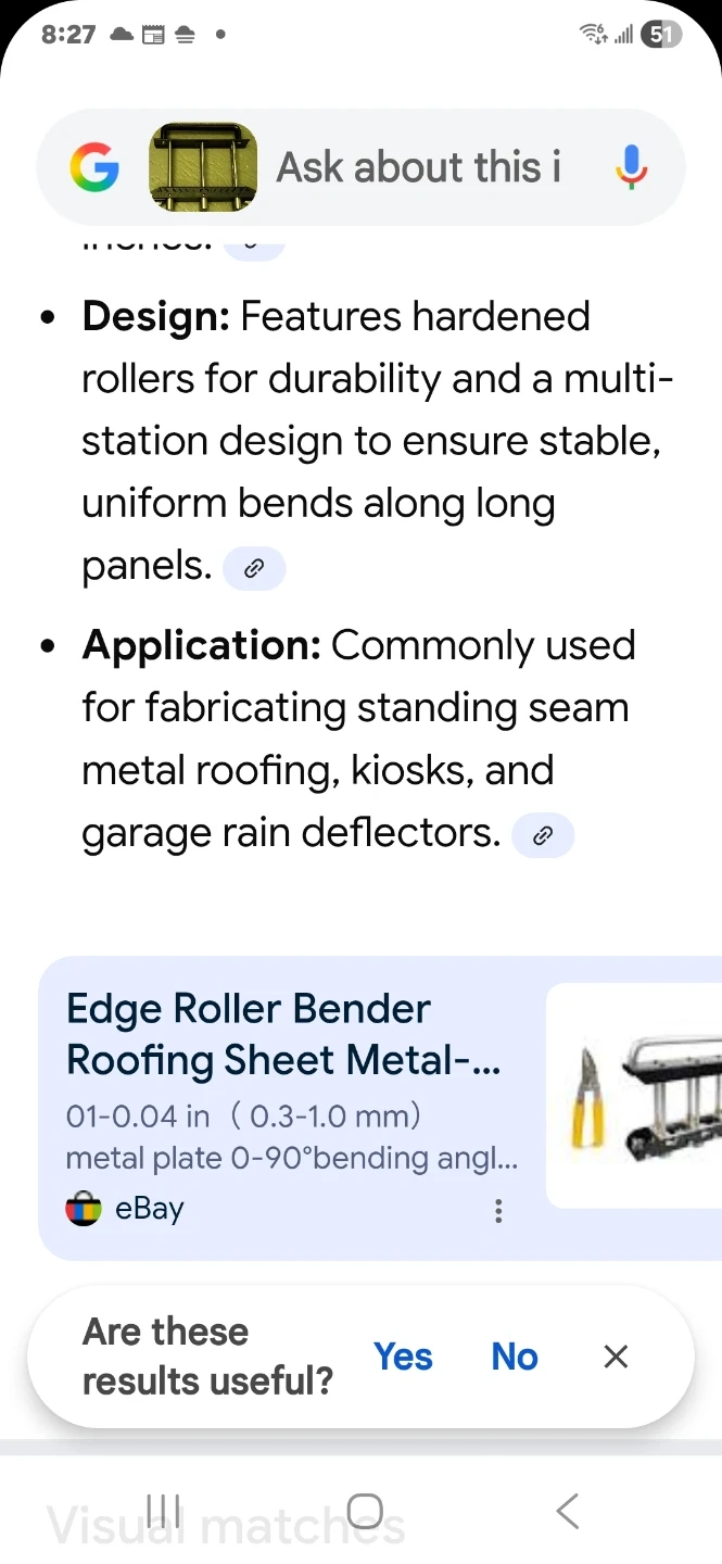 This is a three-station edge roller bender for sheet metal fabrication. It creates precise 0-90 degree bends in steel, aluminum, and copper. Its design features hardened rollers for durability and a multi-station setup for stable bends. This bender is useful for fabricating standing seam metal roofing and garage rain deflectors.