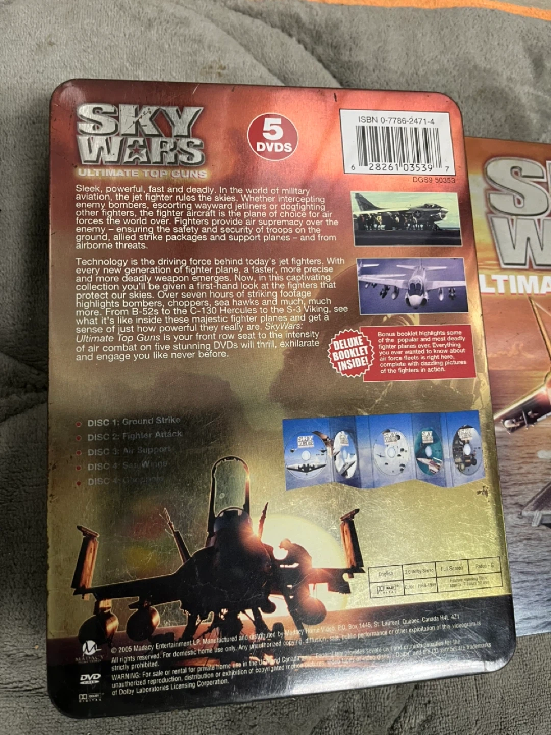 This DVD collection features 5 discs covering various aspects of aerial warfare. It includes coverage of ground attack, fighter combat, air support, sea wings, and helicopters. Enjoy incredible footage of some of the world's most powerful military aircraft.