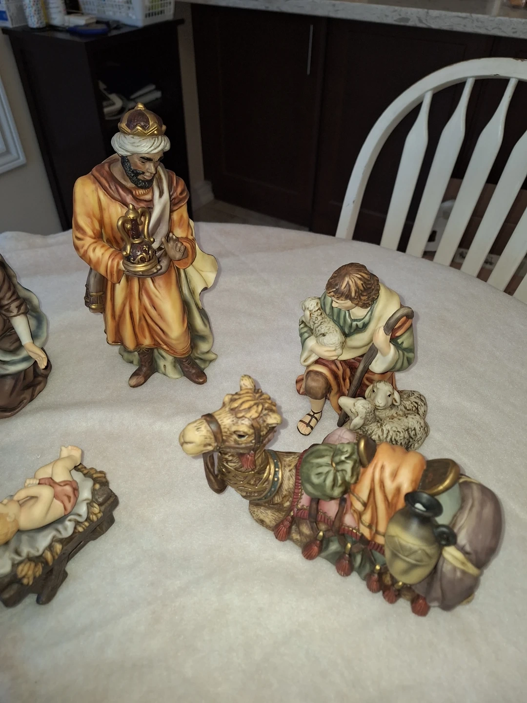 Selling a Kirkland Signature porcelain nativity set, complete with all 10 pieces. The set is in excellent condition and comes with the original box. A beautiful addition to your holiday decor!
