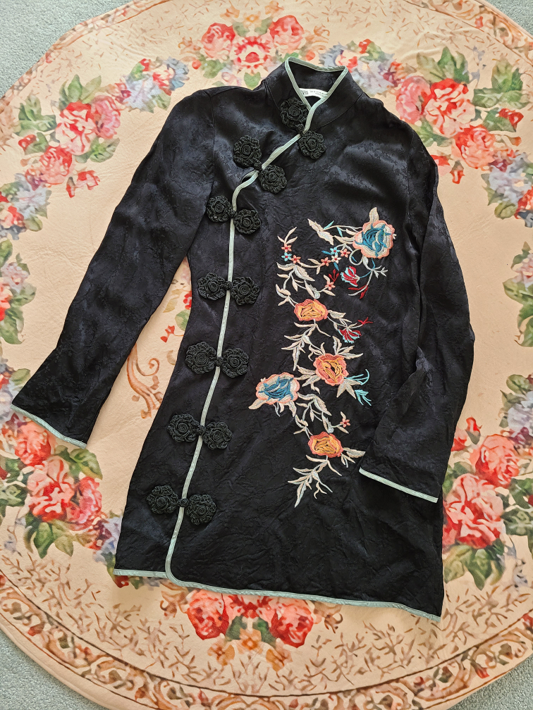 Zara Black Embroidered Mandarin Collar Dress