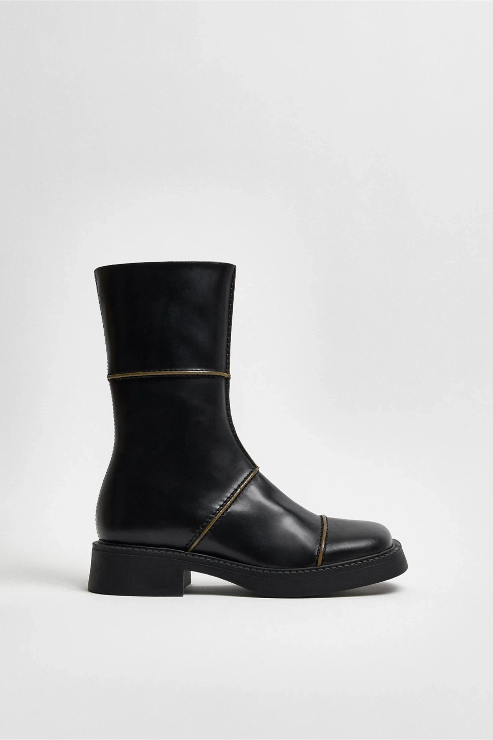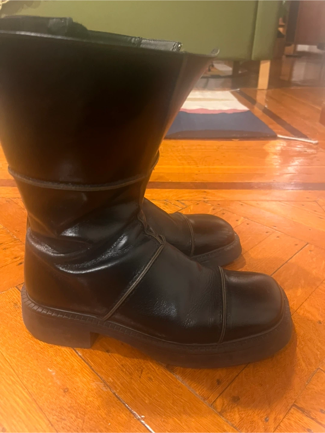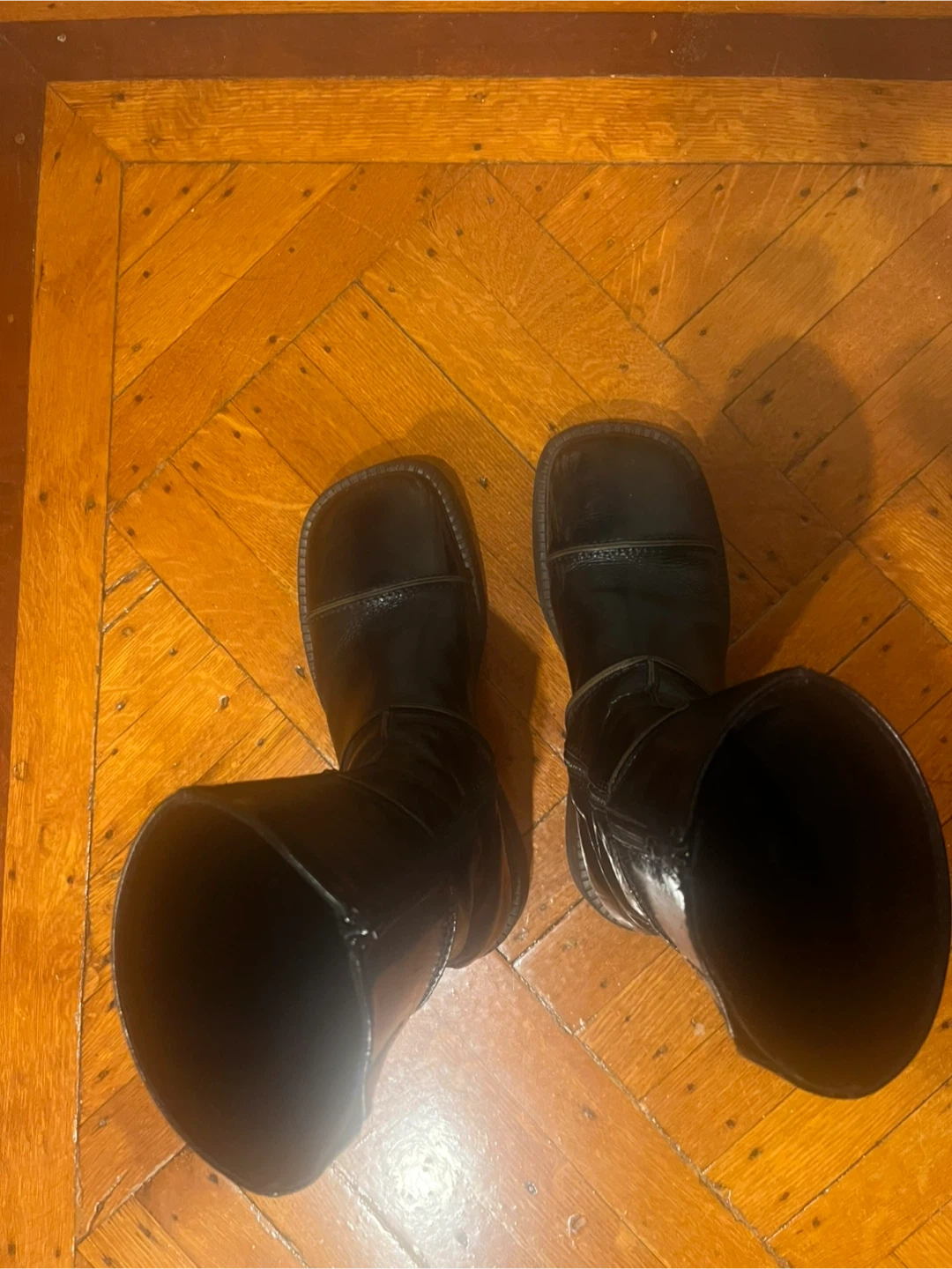 I love these boots but they’re just not working for me! Hopefully someone out there can get more use out of them 🫶🏼🥲 marked as EU39/ US8.5 this color is no longer sold description from website: Dahlia is fitted zip-up, square-toed ankle boot crafted in a glossy, mirror-like Florantique brush-off leather that has a two-toned distressed texture around the base of the upper. The design is constructed from a series of leather panels with raised seam detailing. It features a very wearable low heel and a robust rubber sole with welt detail. Florantique brush-off leather Inside zip Vegetable tan cow leather lining Ultra-cushioned memory foam padded insole Heel Height: 3 cm Please note: This style runs small. If you're between sizes (or wish for more room around the calf and ankle) we recommend sizing up.