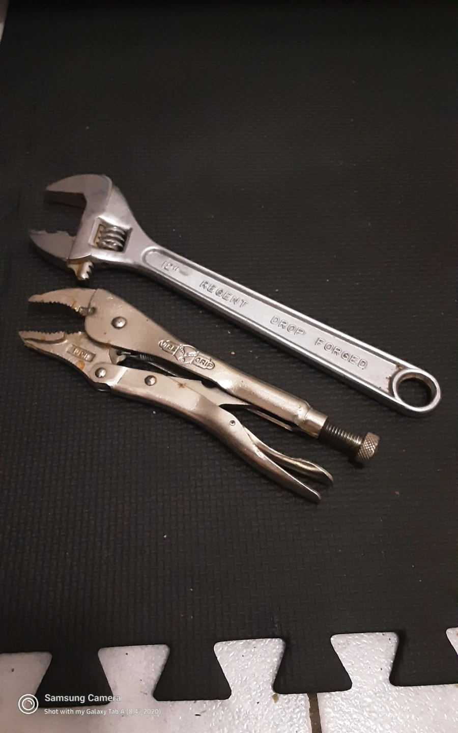 This set includes a 12" Regent drop-forged adjustable wrench and a set of Vise-Grip pliers. These tools are made from metal and are ready for your next project.
