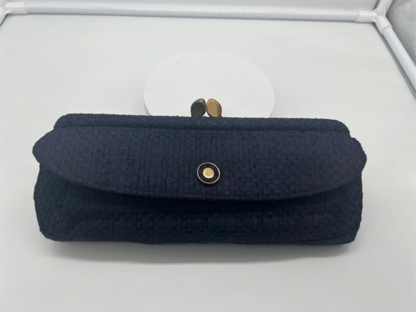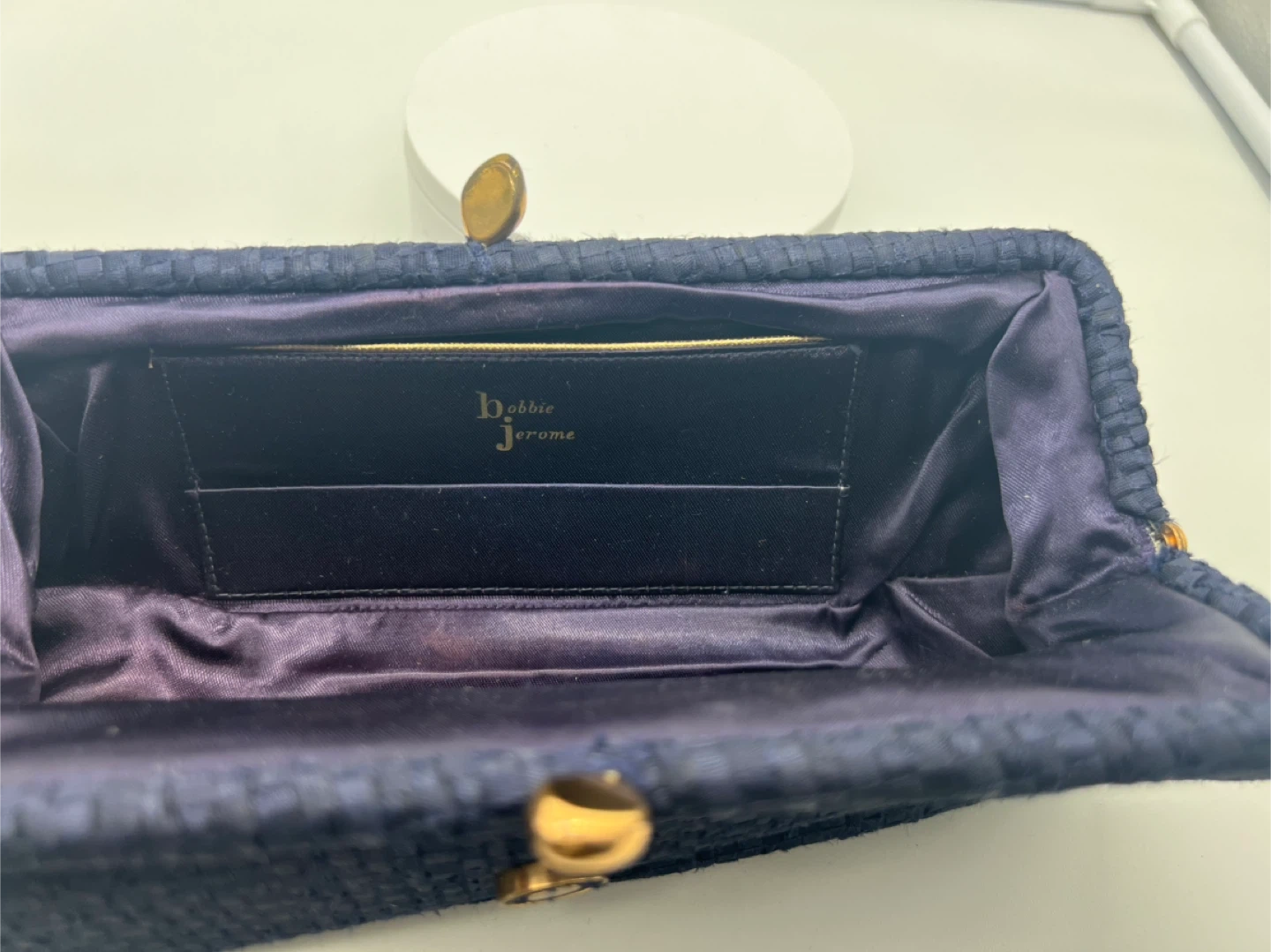 BOBBIE JEROME VINTAGE 1950s Midnight Blue Woven Fabric Clutch