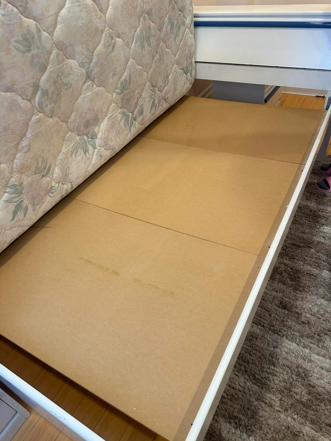White Single Bed Frame with Mattress and Nightstand