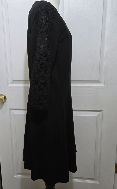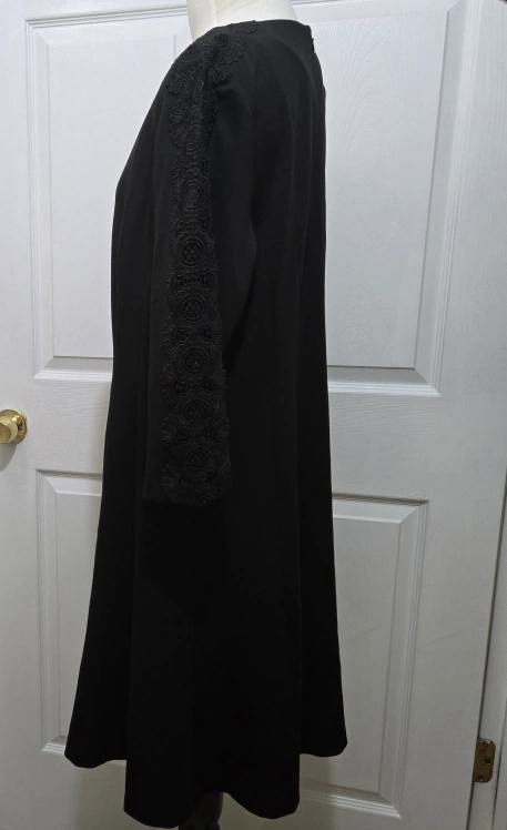 Talbots 16P Womens Black Lace Long Sleeve V-Neck Sheath Dress
