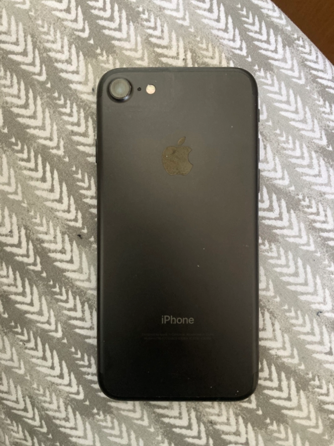 Pre-owned iPhone 7 in black. Shows some wear. Battery health at 76%. Functionality may vary.