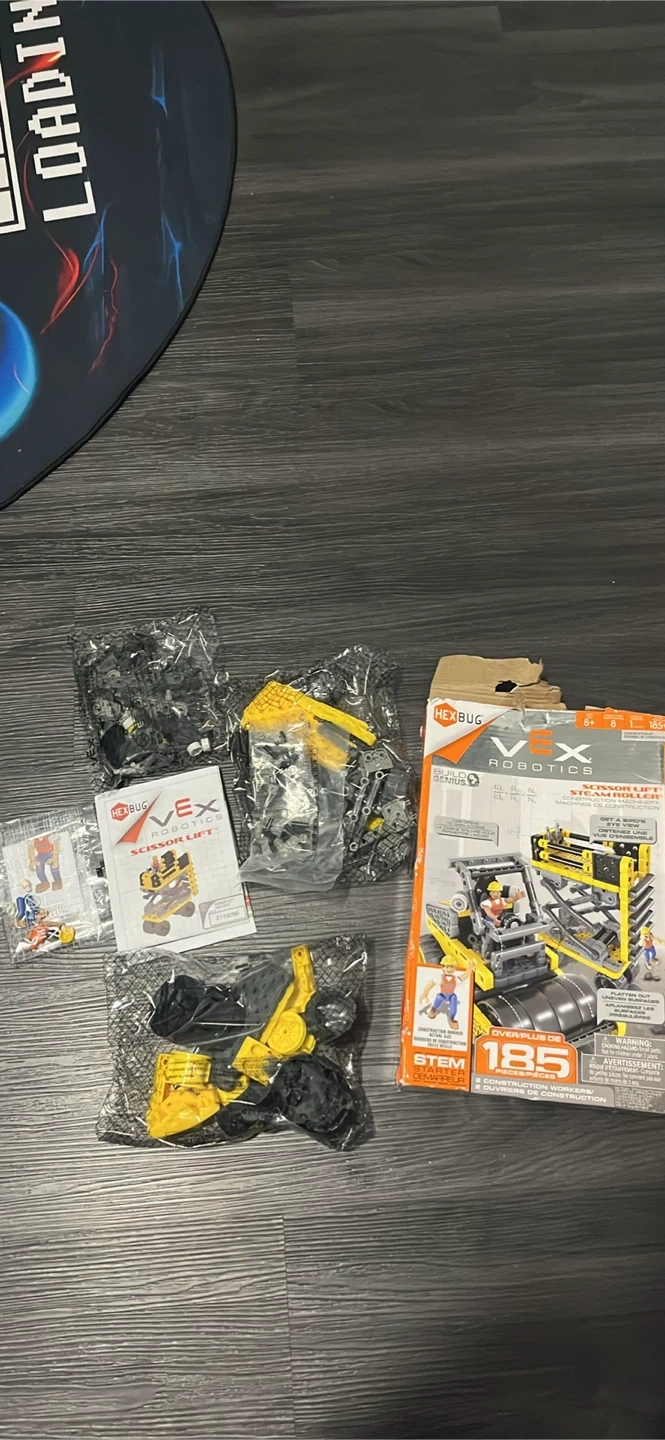 Build your own VEX Robotics Scissor Lift with this STEM kit! It includes over 185 pieces and instructions for assembly. Construction workers are also included.