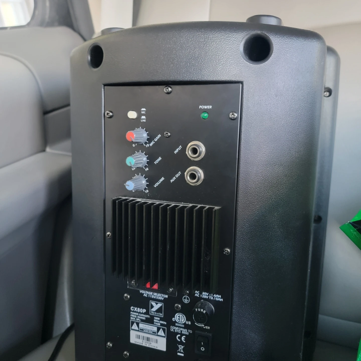This Yorkville CX80P powered speaker offers 150W of power. It features XLR input, aux out, tone and volume controls. Made in China.