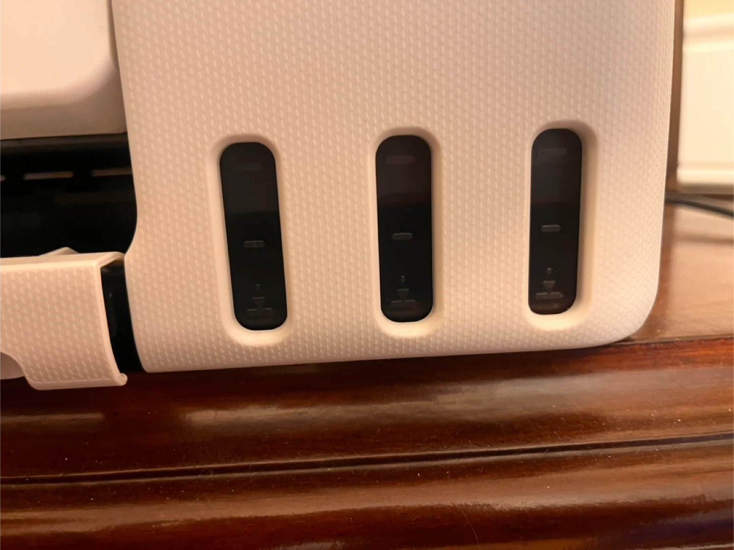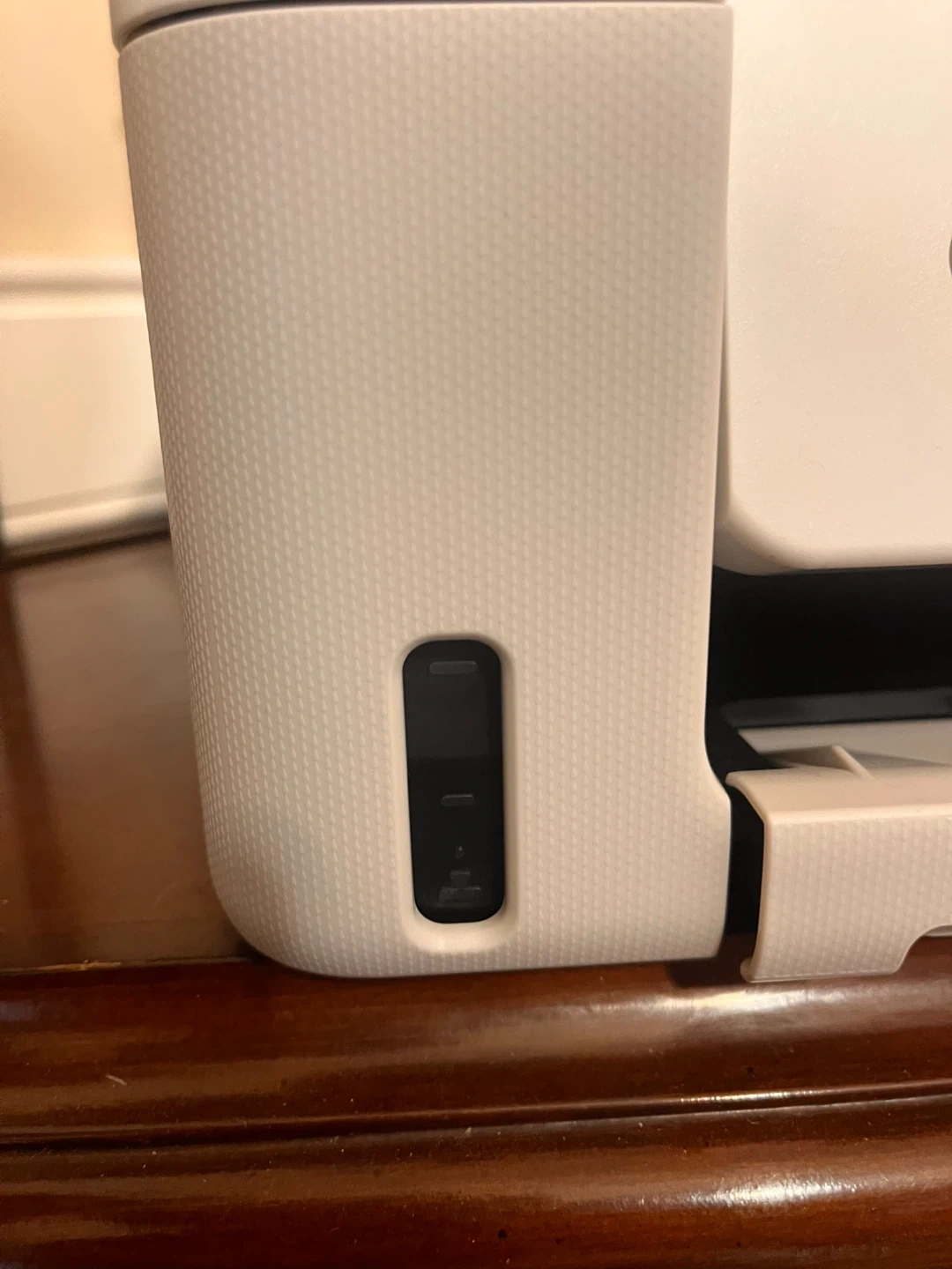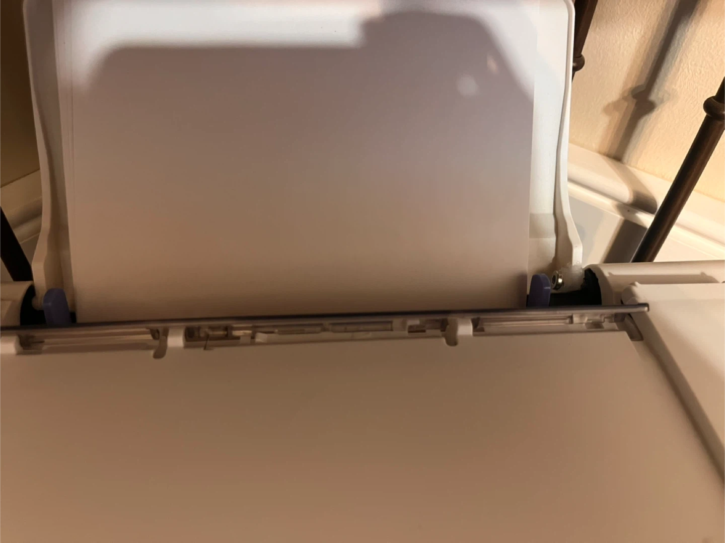 One side of the paper tray is cracked. But it works fine.