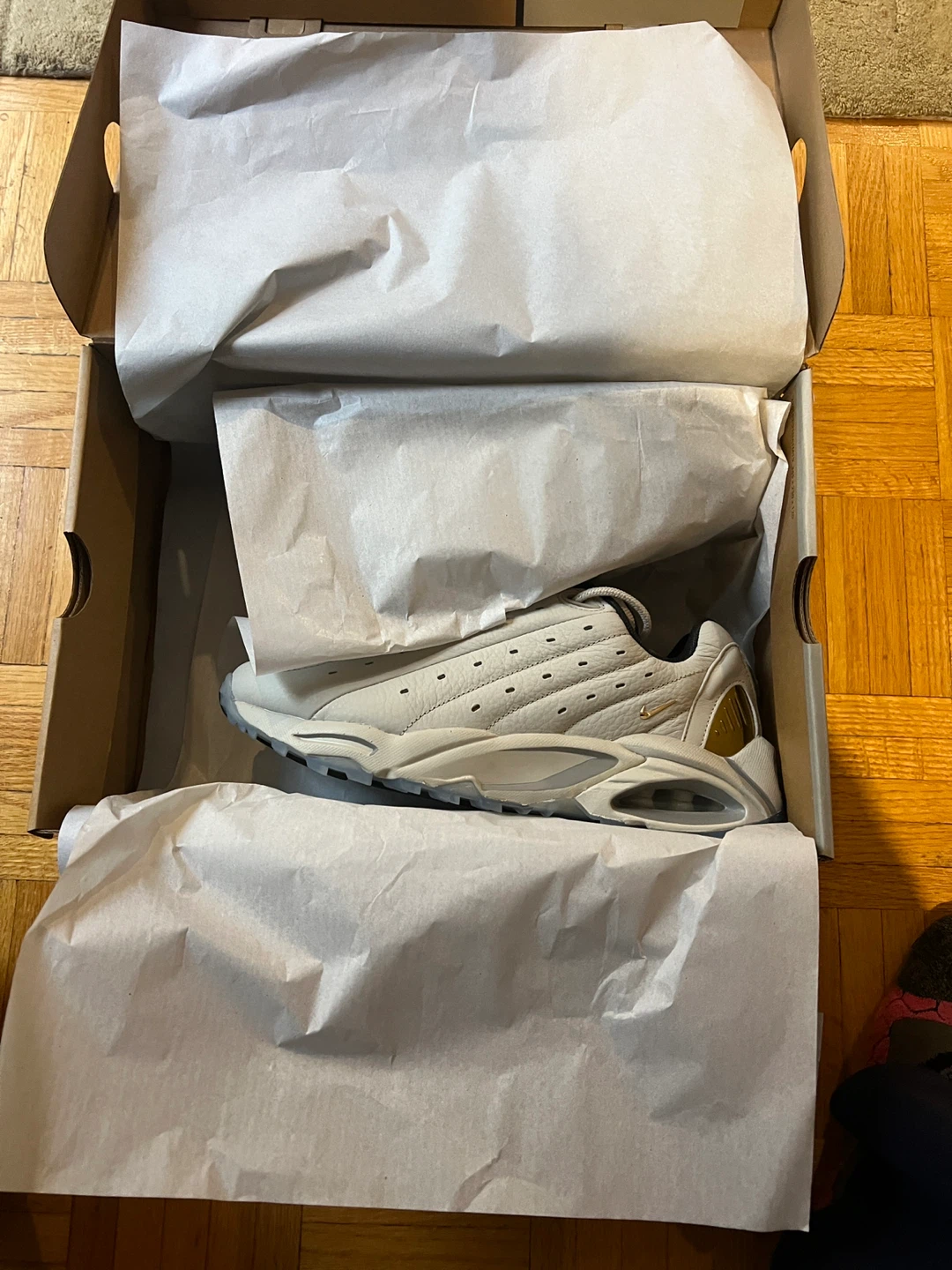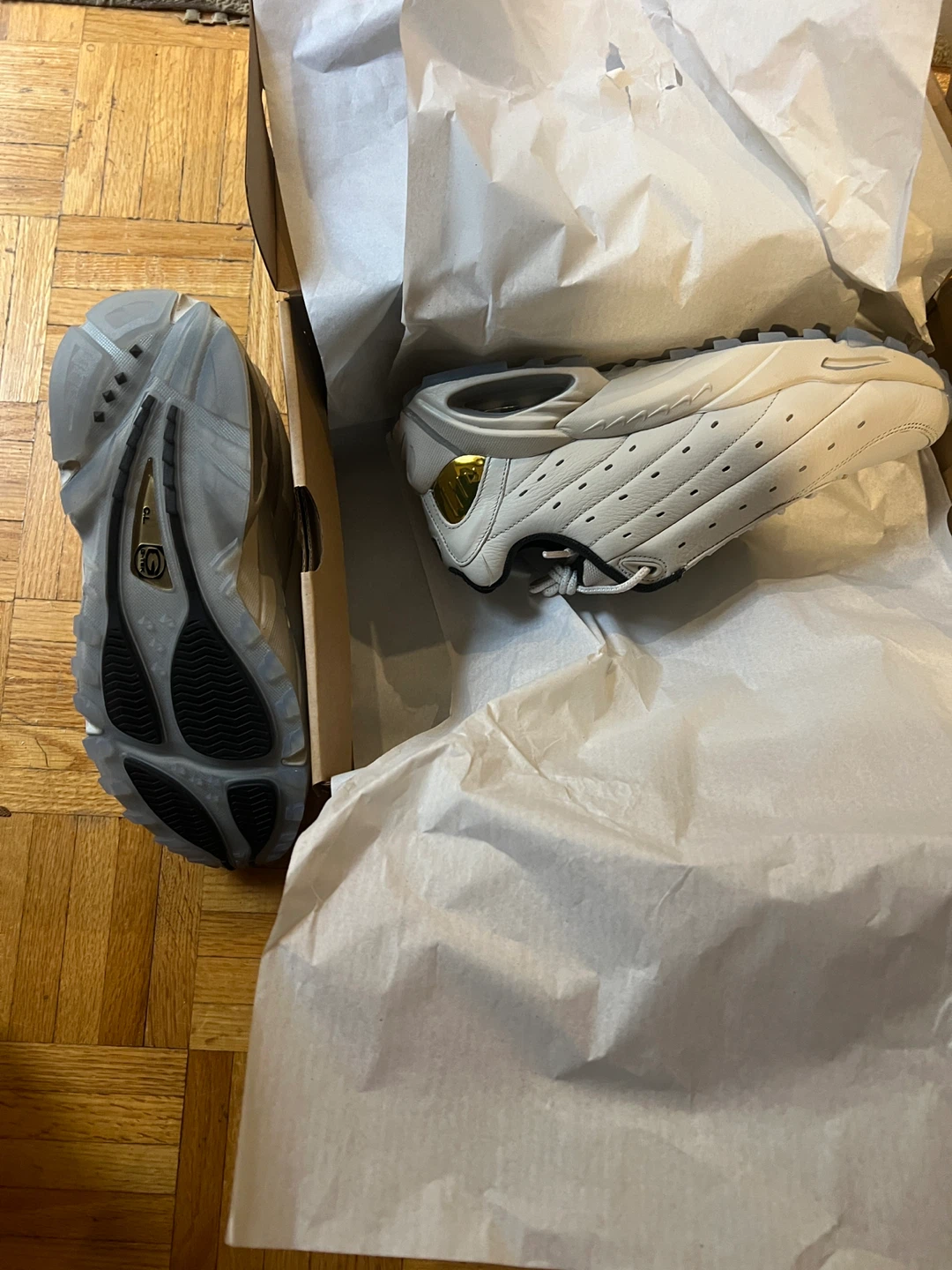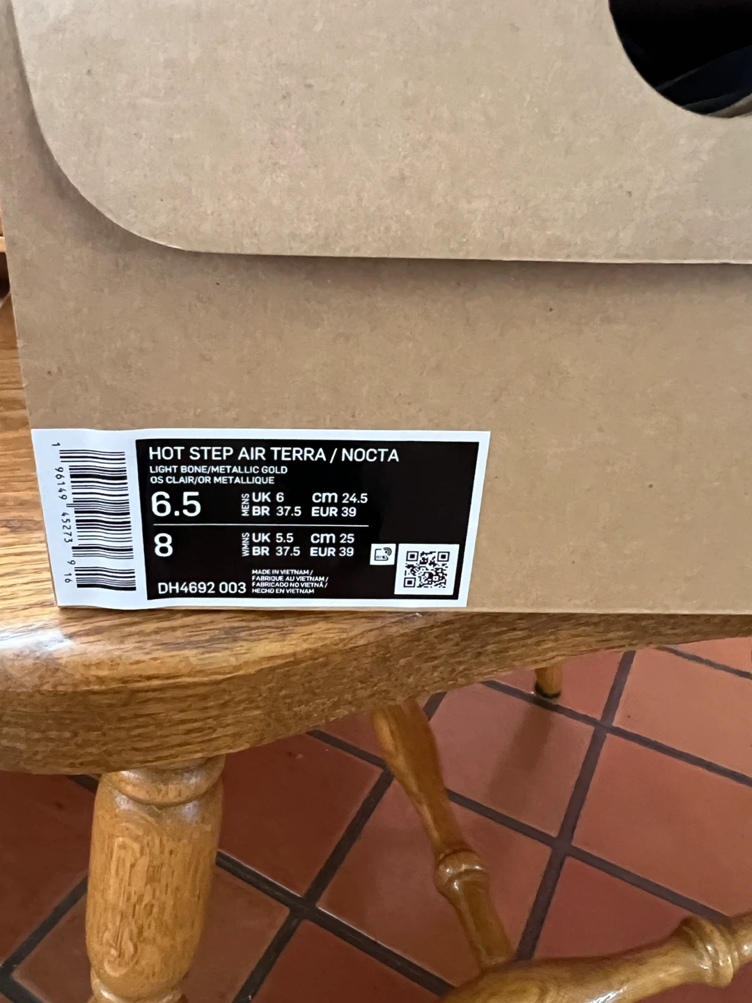 Selling a pair of brand new Nike Hot Step Air Terra NOCTA shoes in size 6.5 mens/ 8 Womens. The colour is light bone/metallic gold. They come with the original box item comes from a pet and smoke free home. Port union/401/Pickering for pick up.