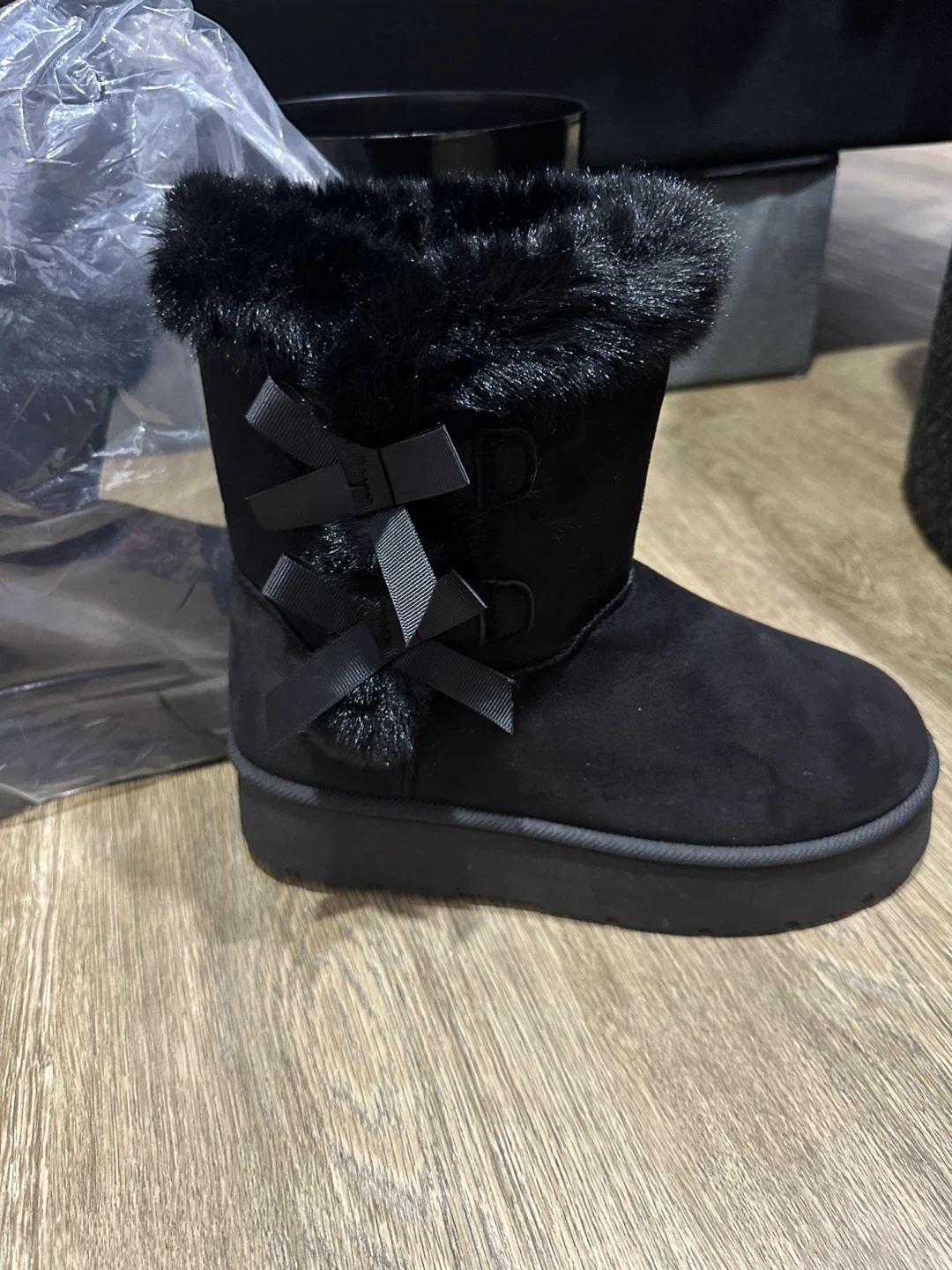 Buy & SellBlack Faux Suede Boots with Fur Trim and BowsBlack Faux Suede Boots with Fur Trim and Bows$40Cozy black boots featuring a faux suede finish, a plush fur trim, and decorative bows. SIZE 41ConditionNewSize41WHERE TO MEETCheck LocationView MapSELLERverifiedRobinNorth London750 reviews0 chats·0 favorites·11 viewsSEND CHAT TO SELLERHi Robin! I’m interested in your listing.Hi Robin! I’m interested in your listing.Get the Karrot app to chatSign In to chat