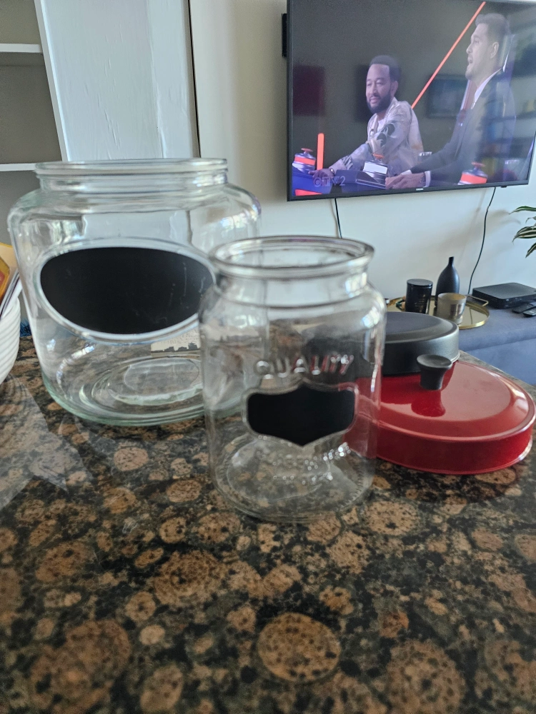 Set of Two Glass Canisters with Chalkboard Labels