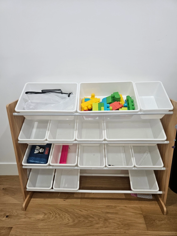 Selling a toy storage organizer for kids! It comes with multiple bins for easy organization of toys and other items.