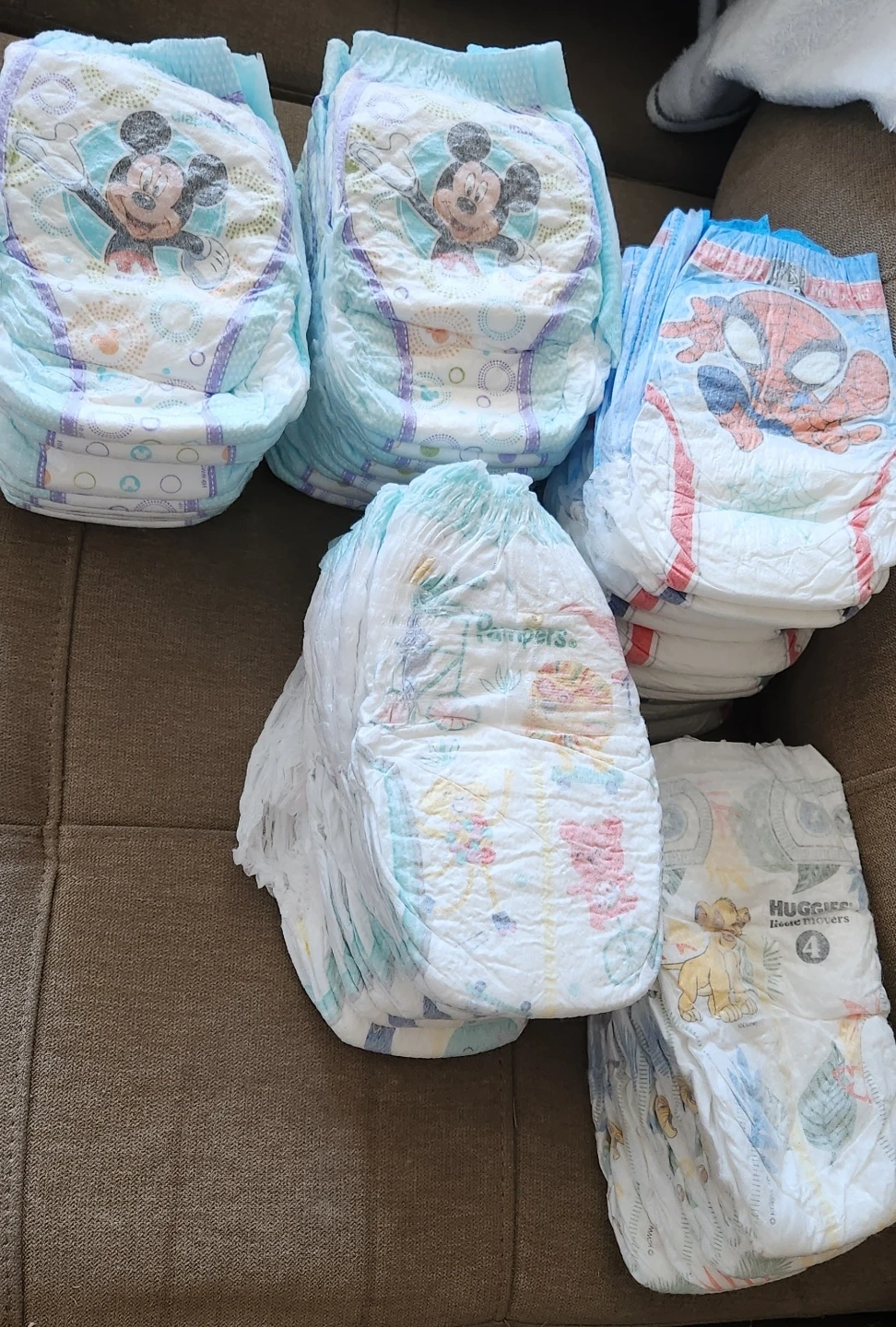 Pic 8) mixed size 4 loose diapers, approx 45 diapers, $10