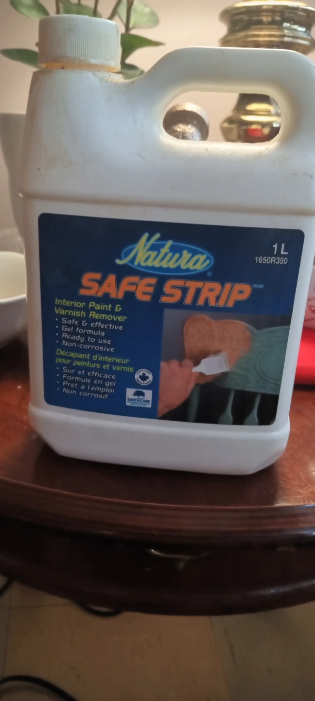 This is Natura SAFE STRIP, an interior paint and varnish remover. It's a 1L bottle with a gel formula that's safe, effective, and ready to use. It's also non-corrosive!