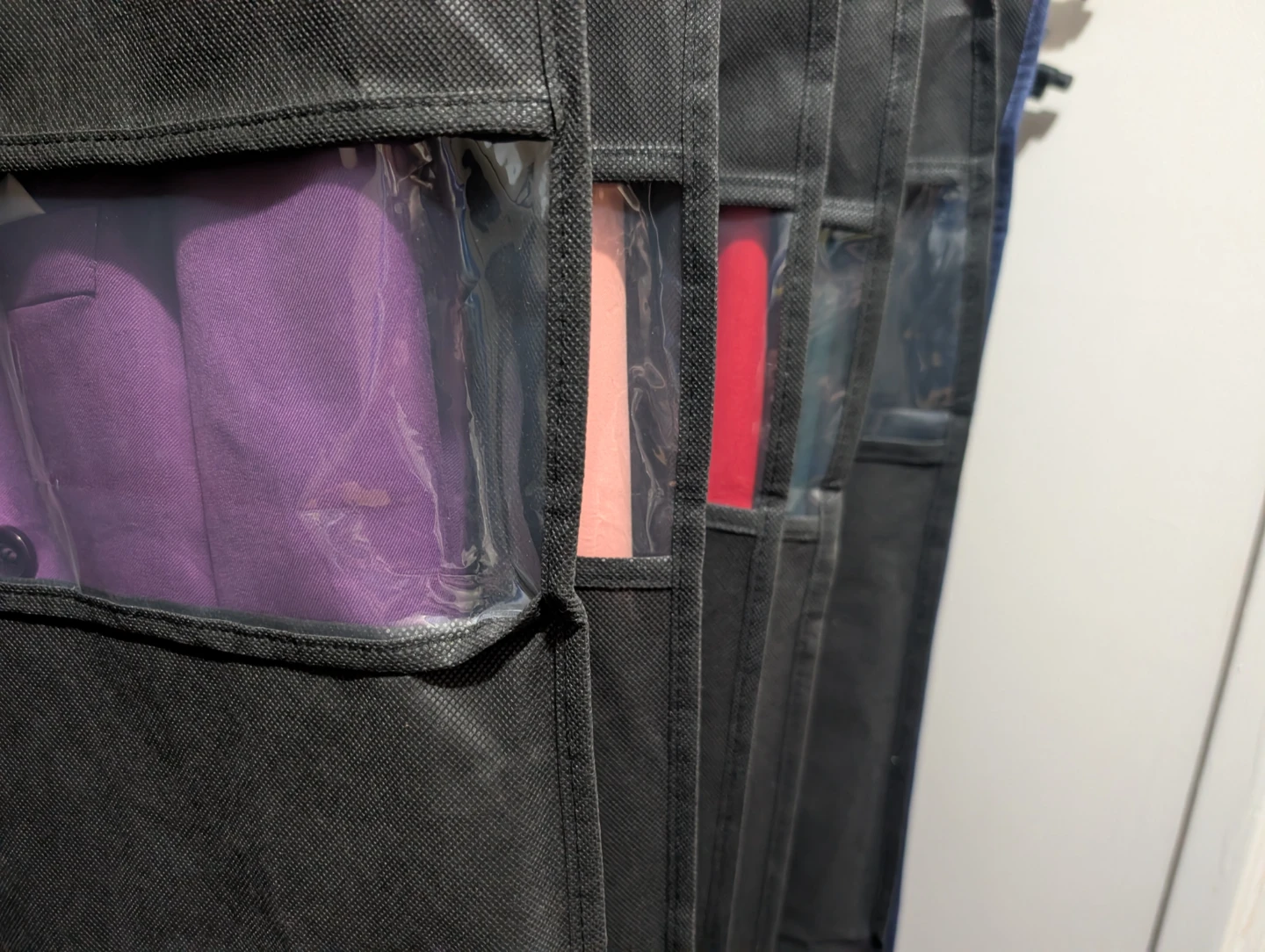 They are all different colours (black, navy, blue, burgandy etc..), brand new and they all come in their own suit bag.
