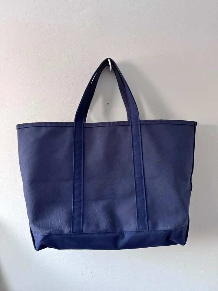 This is an exclusive all-navy tote bag, only available in Japan. It's a size large, in very good condition, and about 1 year old. It also has embroidery on it.