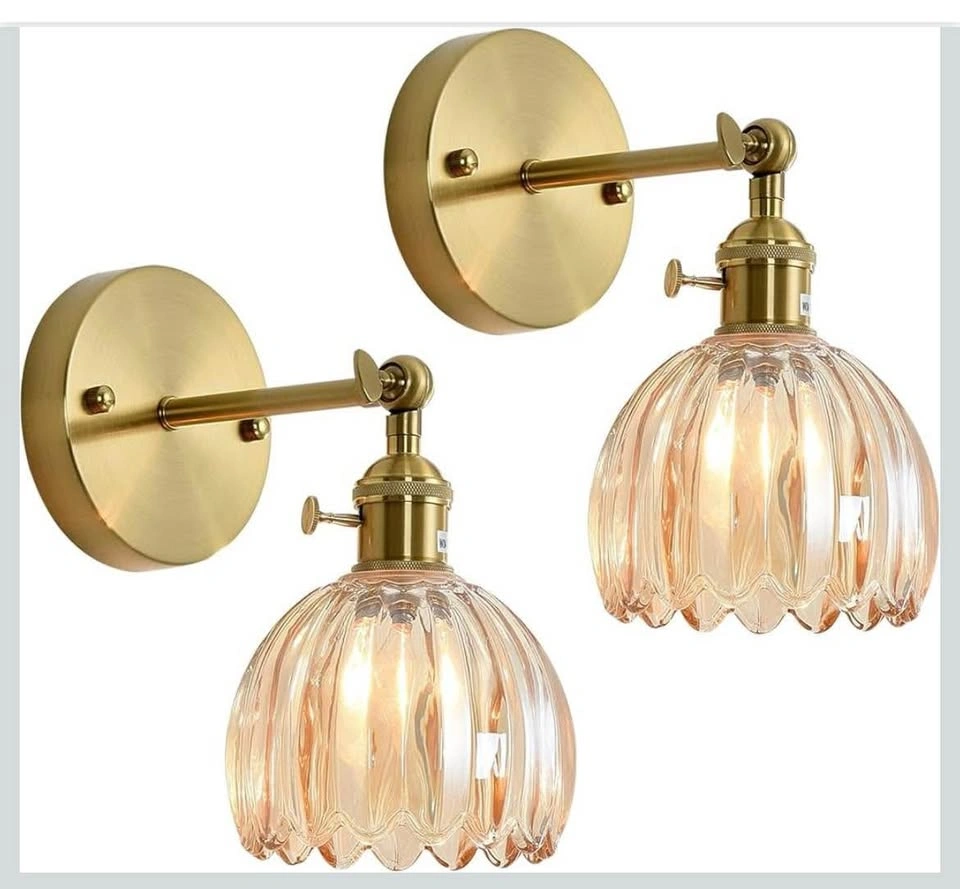 Vintage Wall Sconces with Amber Tulip Glass Lampshade