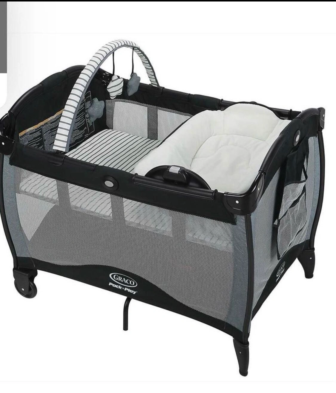 Graco Pack 'n Play. Material: Plastic. Item Weight: 28.3 Pounds. Item Dimensions: 40 x 28.5 x 33.25 inches. Age Range: Newborn to infant to toddler.