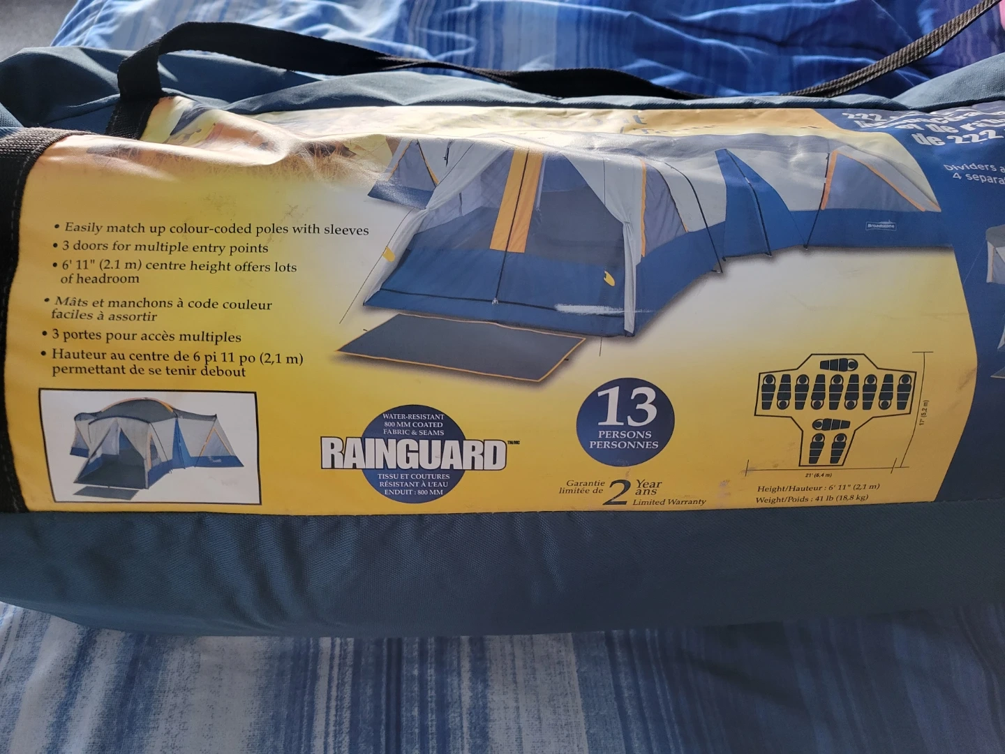 Sleeps 13 people, has 4 rooms (3 rooms that can be used as vestibules/equipment/seperate sleep areas) and one large main room (can be used as sleeping/dining area/living area).