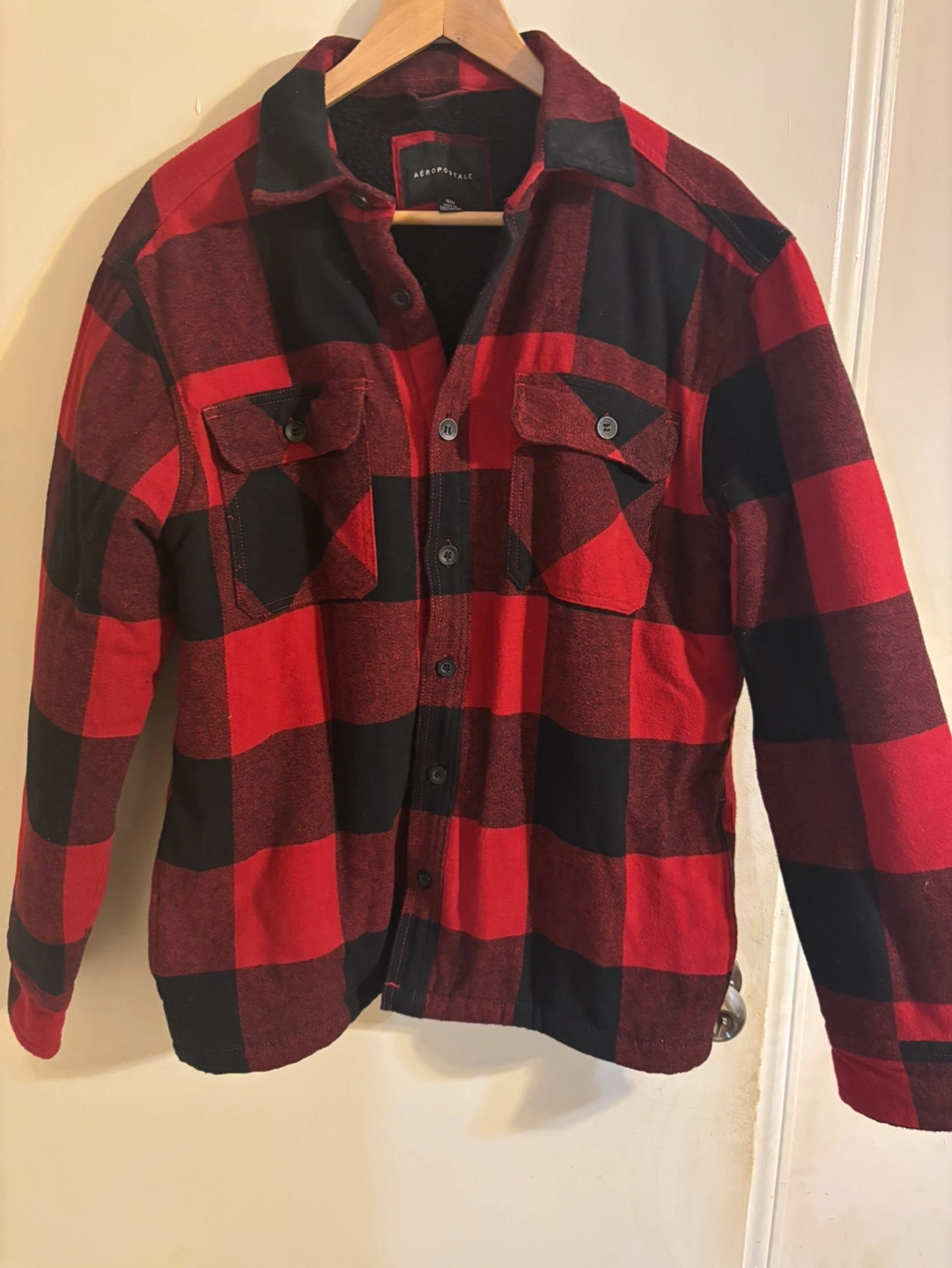 Men's Aeropostale Red and Black Flannel Shirt Jacket