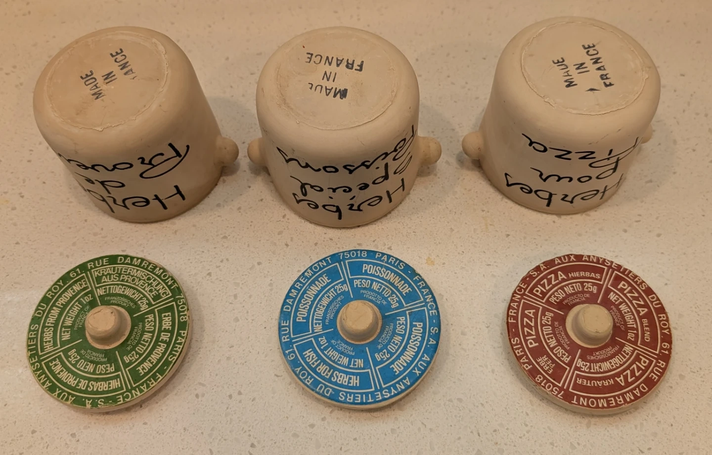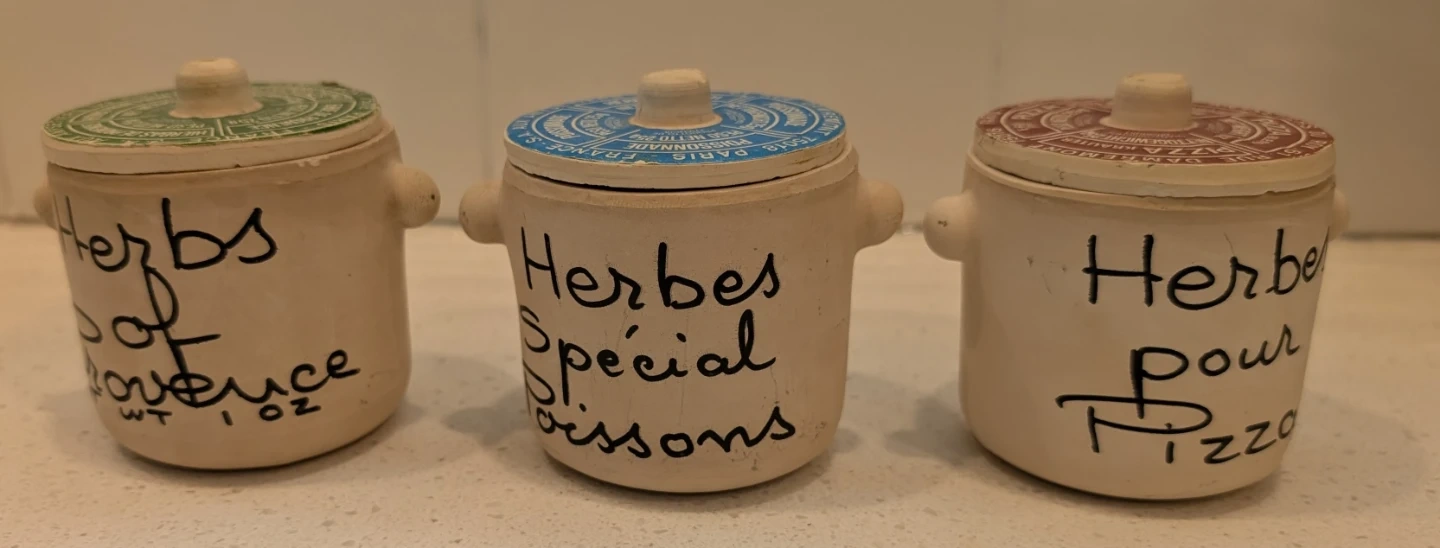 Buy & SellCeramic Herb JarsCeramic Herb Jars$15Set o 3 ceramic jars with lids Made in France Here's de Provence Herbs Special Poisson's Herbes por Pizza ConditionLike newDimensions3" high x 3" acrossWHERE TO MEETRiver Street & Queen Street EastView MapSELLERverifiedClareOld Toronto51335 reviews0 chats·1 favorites·19 viewsSEND CHAT TO SELLERHi Clare! I’m interested in your listing.Hi Clare! I’m interested in your listing.Get the Karrot app to chatSign In to chat