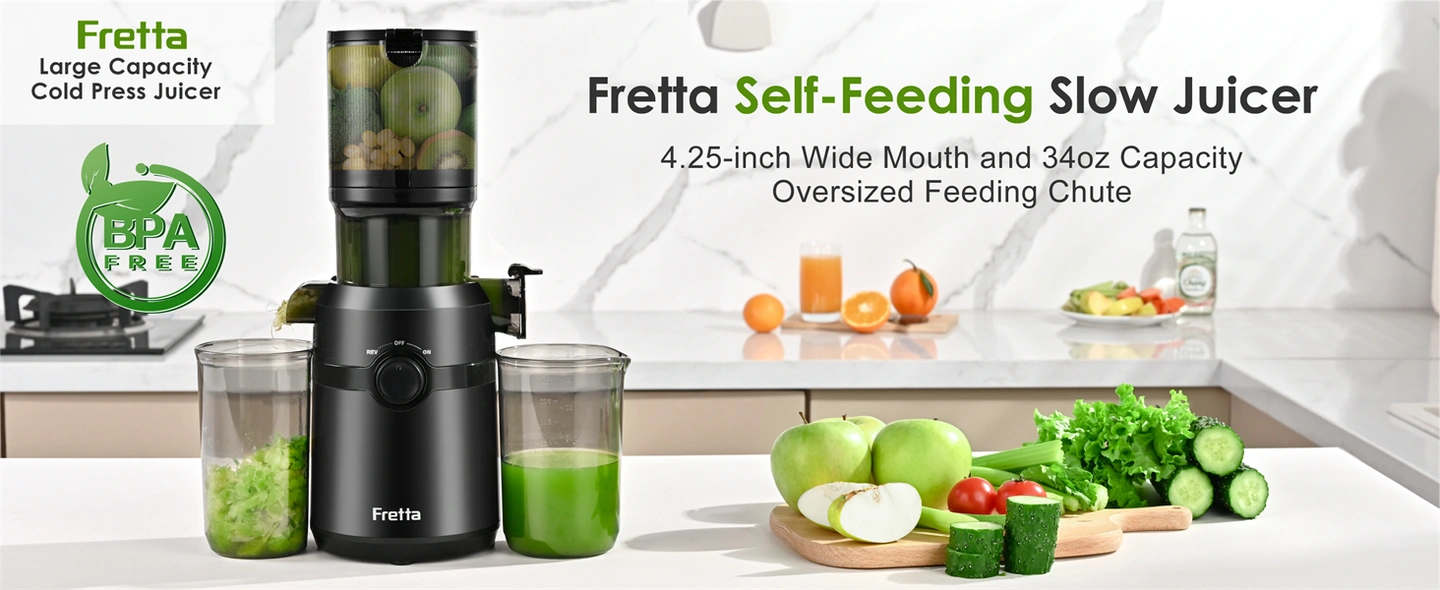 Fretta Cold Press Juicer Machine with 4.25" Large Feed Chute