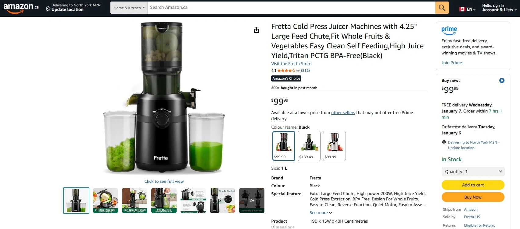 Fretta Cold Press Juicer Machine with 4.25" Large Feed Chute,Fit Whole Fruits & Vegetables Easy Clean Self Feeding,High Juice Yield,Tritan PCTG BPA-Free(Black)