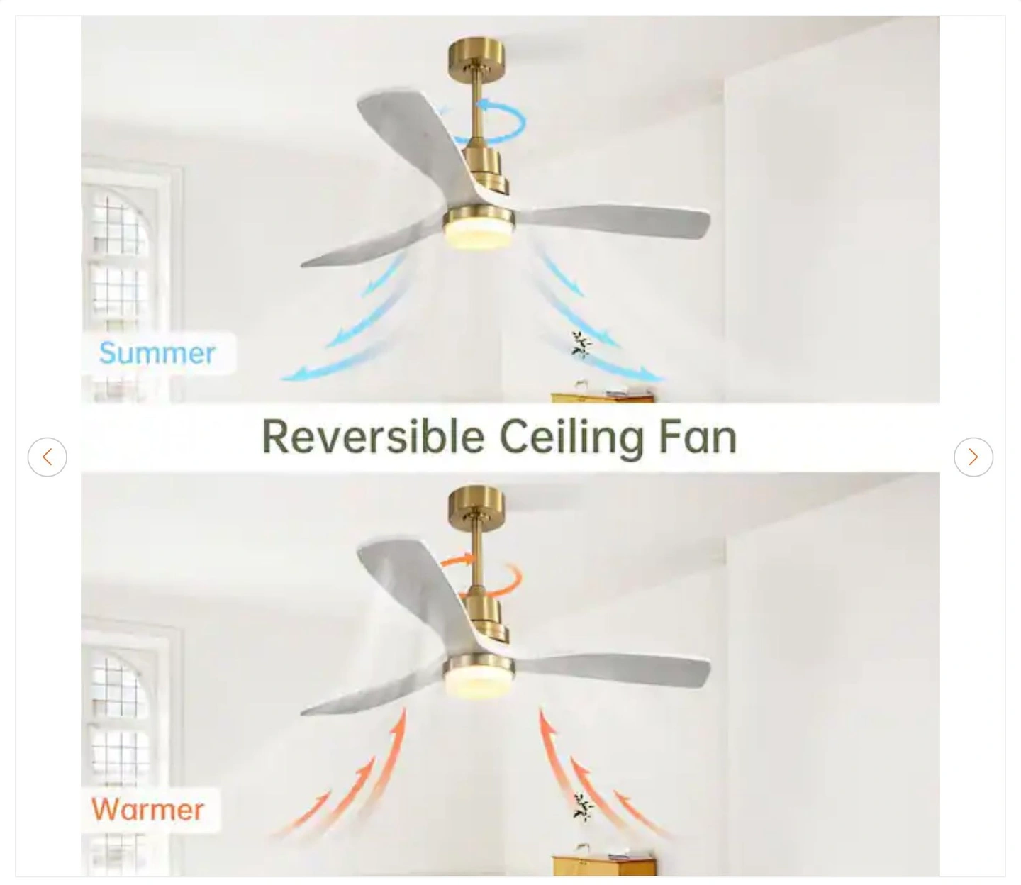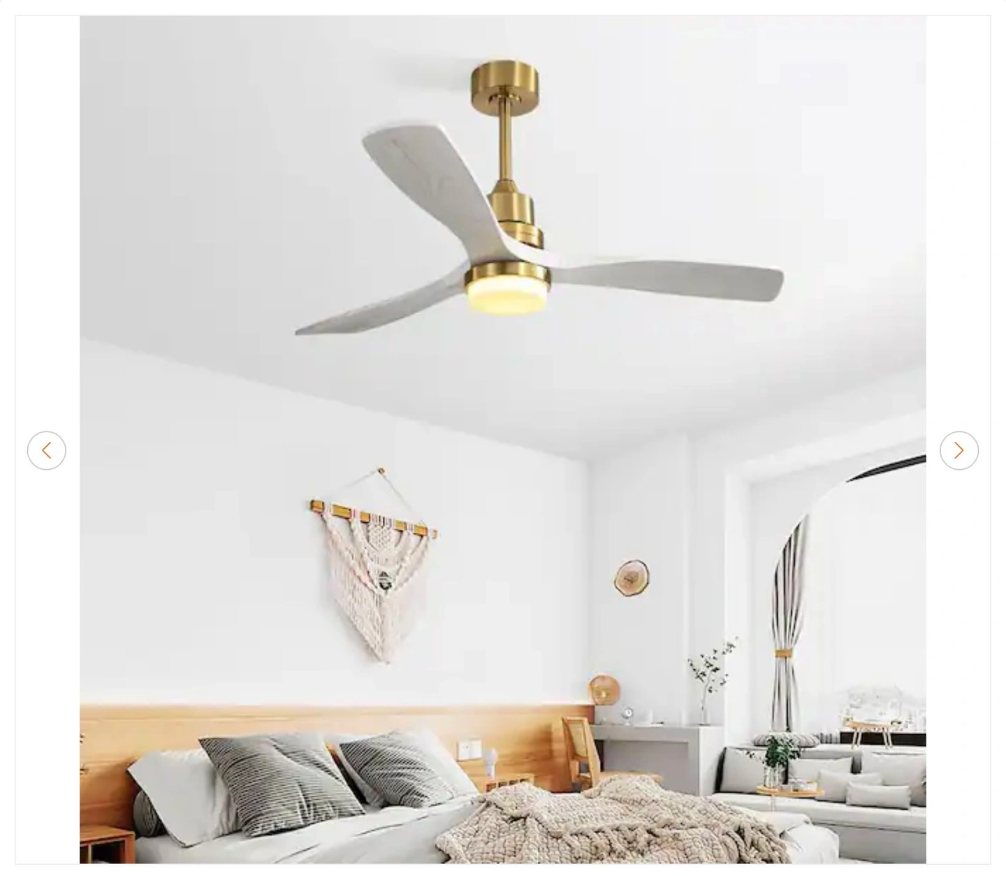 Brand new Byteany 52 in. Indoor Gold Ceiling Fan with Light. Features 3-wood blades, dimmable lighting, a reversible DC motor, and 3 adjustable color temperatures. Comes with a remote.