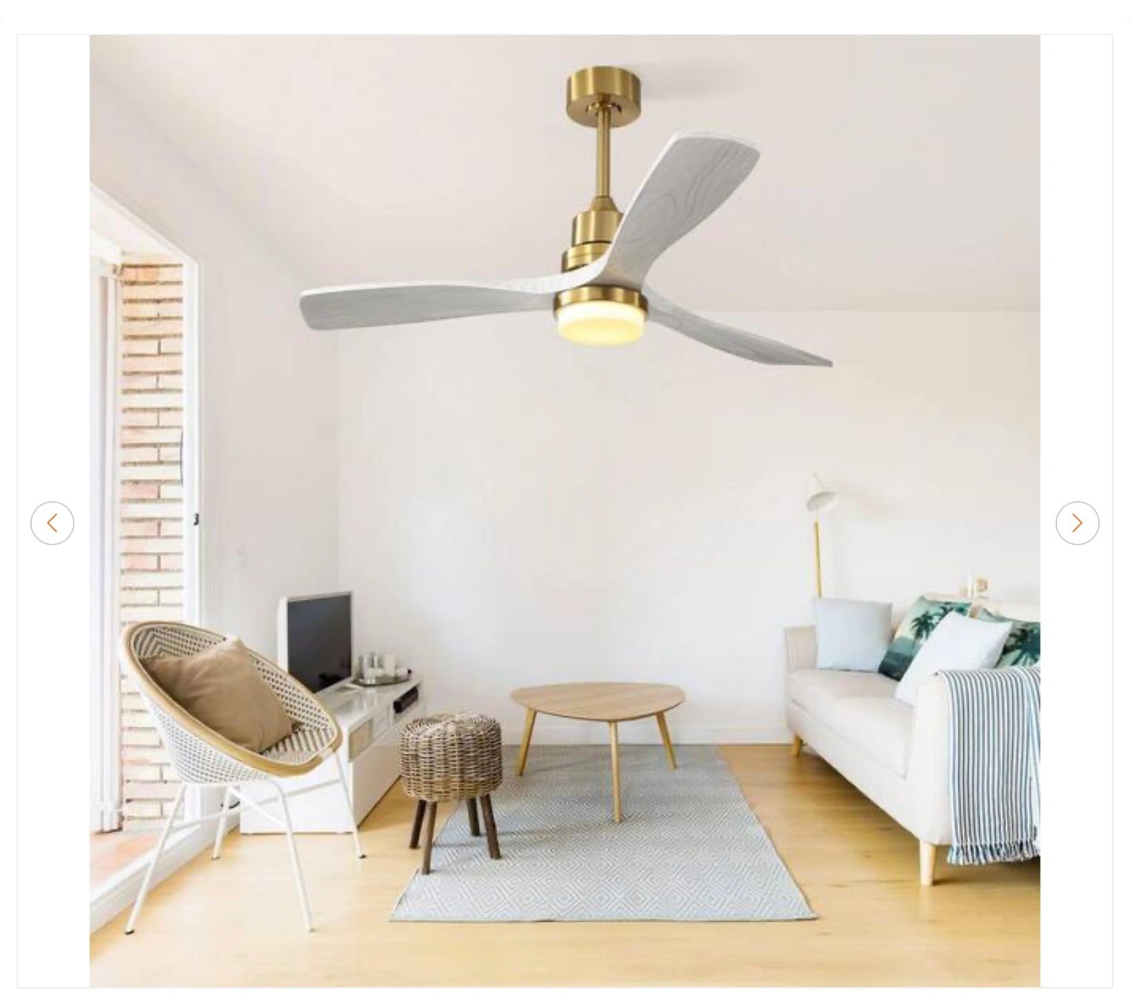 Brand new Byteany 52 in. Indoor Gold Ceiling Fan with Light. Features 3-wood blades, dimmable lighting, a reversible DC motor, and 3 adjustable color temperatures. Comes with a remote.