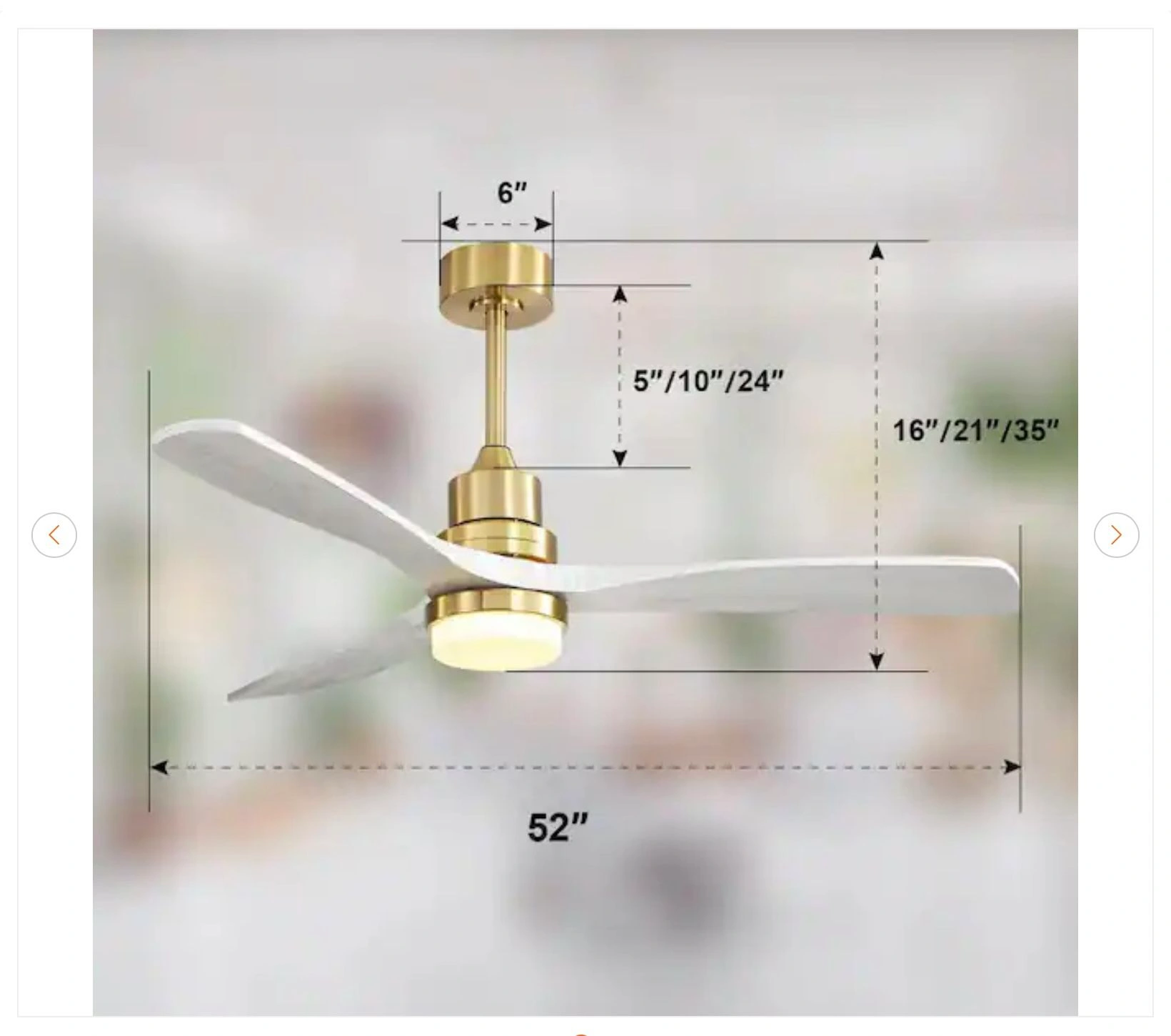 52 in. Indoor Gold Ceiling Fan with Light - New