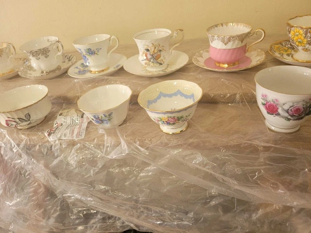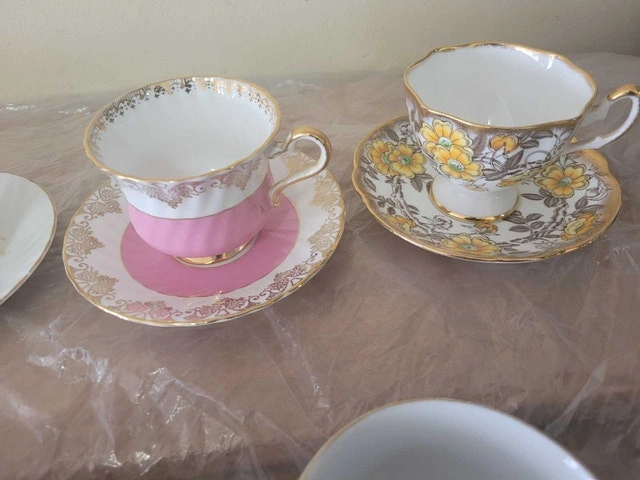 For sell is this Vintage Lot of Royal Albert, Sutherland, Salisbury ect. Bone china cup and saucer Tea set all in excellent condition what you see is all you get as you can see not all cup come with saucer sold as a lot for $50 pick up on beaverbrook lane Kanata thank you