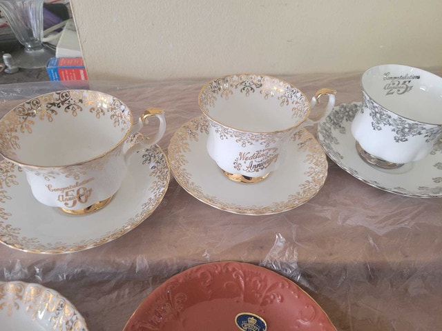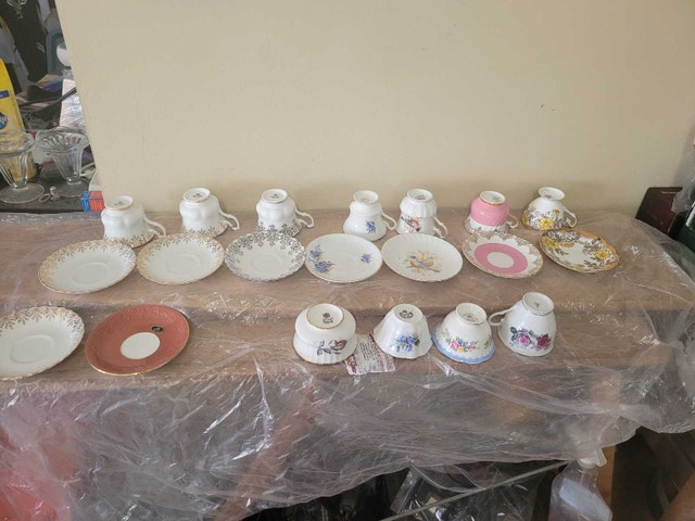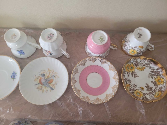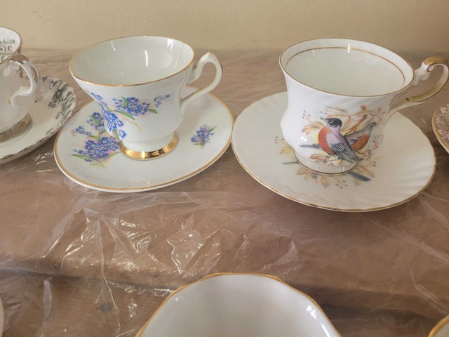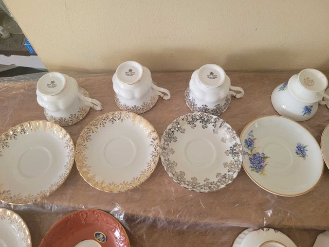 For sell is this Vintage Lot of Royal Albert, Sutherland, Salisbury ect. Bone china cup and saucer Tea set all in excellent condition what you see is all you get as you can see not all cup come with saucer sold as a lot for $50 pick up on beaverbrook lane Kanata thank you