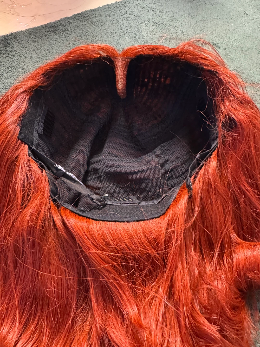 A stylish red bob wig with a natural-looking part. It's a synthetic wig, perfect for costume changes or everyday wear. The color is a vibrant copper red.