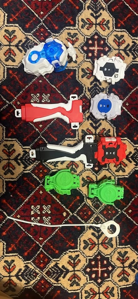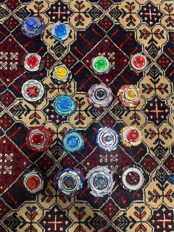 Awesome lot of Beyblades has 18 different ones. The first to 3d row is all takara tomy Beyblades ( real ) and the rest is hasbro. They all range around 30 to 100. For all of them 300. Cash. Pick up