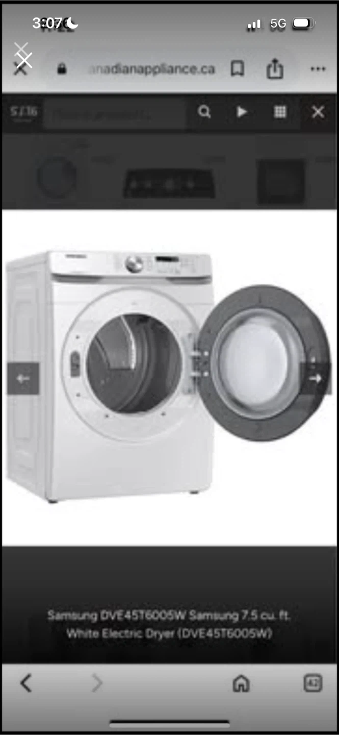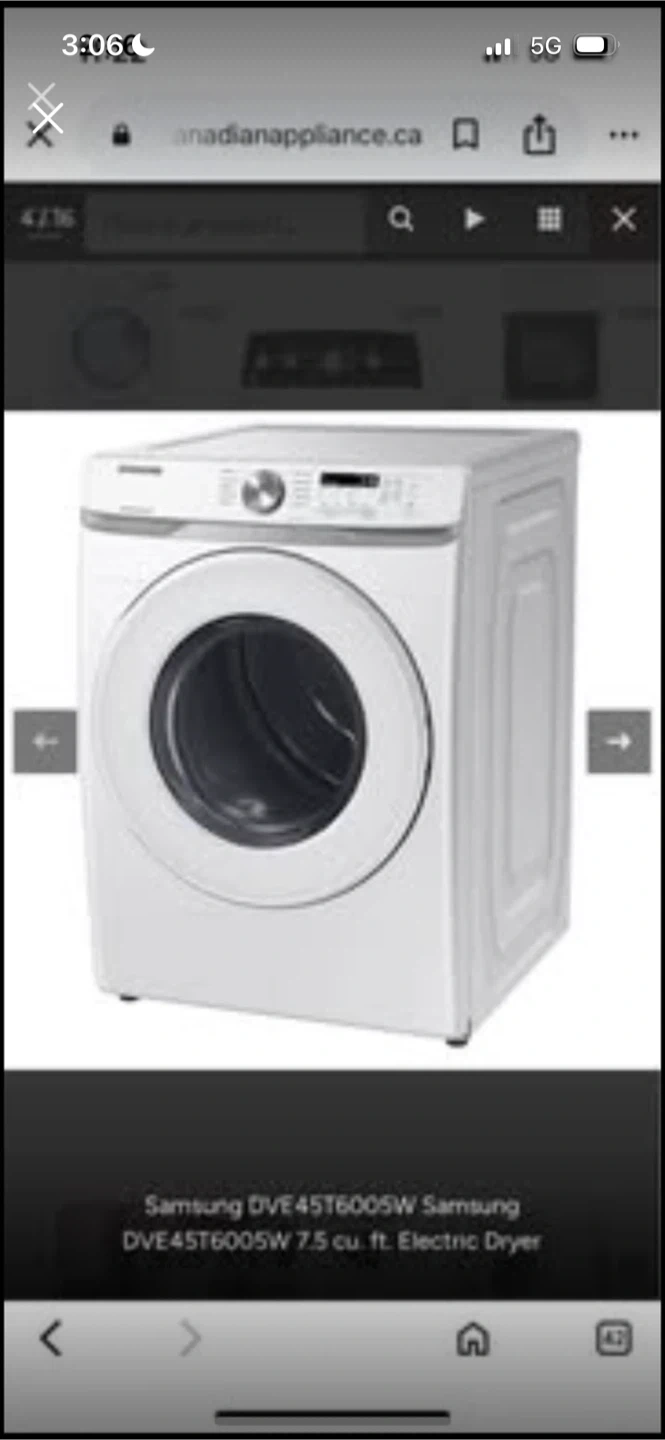 Buy & SellNew Samsung DVE45T6005W 7.5 cu. ft. Electric DryerNew Samsung DVE45T6005W 7.5 cu. ft. Electric Dryer$525Amazon Price $825 Selling a Samsung DVE45T6005W 7.5 cu. ft. electric dryer in white. Great for any laundry room!BrandSamsungWHERE TO MEETCheck LocationView MapSELLERverifiedSanjeevSandringham Wellington2053 reviews0 chats·0 favorites·14 viewsSEND CHAT TO SELLERHi Sanjeev! I’m interested in your listing.Hi Sanjeev! I’m interested in your listing.Get the Karrot app to chatSign In to chat