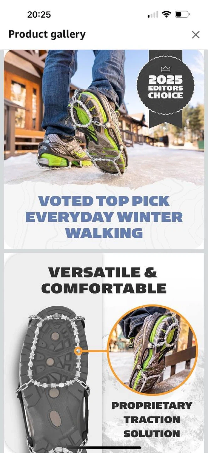 ✔️ All-surface traction (ice, snow, packed snow)